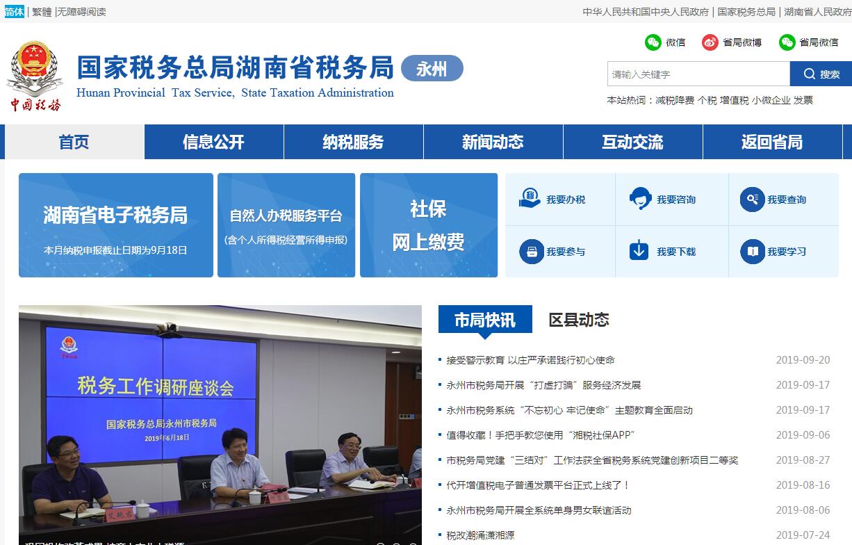 国家税务总局永州市税务局的主要职责是:(一)负责贯彻执行党的路线、方针、政策,加强党的全面领导,履行全面从严治党责任,负责党的建设和思想政治建设工作。(二)负责贯彻执行税收、社会保险费和有关非税收入法律、法规、规章和规范性文件,研究制定具体实施办法。组织落实国家规定的税收优惠政策。(三)负责研究拟定本系统税收、社会保险费和有关非税收入中长期规划,参与拟定税收、社会保险费和有关非税收入预算目标并依法组织实施。负责本系统税收、社会保险费和有关非税收入的会统核算工作。组织开展收入分析预测。(四)负责开展税收经济分析和税收政策效应分析,为国家税务总局湖南省税务局和市委、市政府提供决策参考。(五)负责所辖区域内各项税收、社会保险费和有关非税收入征收管理。组织实施税(费)源监控和风险管理,加强重点税源企业和自然人税收管理。(六)负责组织实施本系统税收、社会保险费和有关非税收入服务体系建设。组织开展纳税服务、税收宣传工作,保护纳税人、缴费人合法权益。承担涉及税收、社会保险费和有关非税收入的行政处罚听证、行政复议和行政诉讼事项。(七)负责所辖区域内国际税收和进出口税收管理工作,组织反避税调查和出口退税事项办理。(八)负责组织实施所辖区域内税务稽查和社会保险费、有关非税收入检查工作。(九)负责增值税专用发票、普通发票和其他各类发票管理。负责税收、社会保险费和有关非税收入票证管理。(十)负责组织实施本系统各项税收、社会保险费和有关非税收入征管信息化建设和数据治理工作。(十一)负责本系统内部控制机制建设工作,开展对本系统贯彻执行上级部门重大决策及工作部署情况的督查督办,组织实施税收执法督察。(十二)负责本系统基层建设和干部队伍建设工作,开展领导班子和后备干部队伍建设,承担税务人才培养和干部教育培训工作。负责本系统绩效管理和干部考核工作。(十三)负责本系统机构、编制、经费和资产管理工作。(十四)完成国家税务总局湖南省税务局和市委、市政府交办的其他工作。