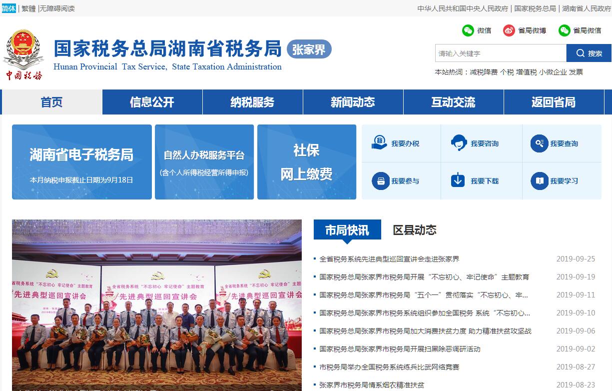 国家税务总局张家界市税务局的主要职责是:(一)负责贯彻执行党的路线、方针、政策,加强党的全面领导,履行全面从严治党责任,负责党的建设和思想政治建设工作。(二)负责贯彻执行税收、社会保险费和有关非税收入法律、法规、规章和规范性文件,研究制定具体实施办法。组织落实国家规定的税收优惠政策。(三)负责研究拟定本系统税收、社会保险费和有关非税收入中长期规划,参与拟定税收、社会保险费和有关非税收入预算目标并依法组织实施。负责本系统税收、社会保险费和有关非税收入的会统核算工作。组织开展收入分析预测。(四)负责开展税收经济分析和税收政策效应分析,为国家税务总局湖南省税务局和市委、市政府提供决策参考。(五)负责所辖区域内各项税收、社会保险费和有关非税收入征收管理。组织实施税(费)源监控和风险管理,加强重点税源企业和自然人税收管理。(六)负责组织实施本系统税收、社会保险费和有关非税收入服务体系建设。组织开展纳税服务、税收宣传工作,保护纳税人、缴费人合法权益。承担涉及税收、社会保险费和有关非税收入的行政处罚听证、行政复议和行政诉讼事项。(七)负责所辖区域内国际税收和进出口税收管理工作,组织反避税调查和出口退税事项办理。(八)负责组织实施所辖区域内税务稽查和社会保险费、有关非税收入检查工作。(九)负责增值税专用发票、普通发票和其他各类发票管理。负责税收、社会保险费和有关非税收入票证管理。(十)负责组织实施本系统各项税收、社会保险费和有关非税收入征管信息化建设和数据治理工作。(十一)负责本系统内部控制机制建设工作,开展对本系统贯彻执行上级部门重大决策及工作部署情况的督查督办,组织实施税收执法督察。(十二)负责本系统基层建设和干部队伍建设工作,开展领导班子和后备干部队伍建设,承担税务人才培养和干部教育培训工作。负责本系统绩效管理和干部考核工作。(十三)负责本系统机构、编制、经费和资产管理工作。(十四)完成国家税务总局湖南省税务局和市委、市政府交办的其他工作。