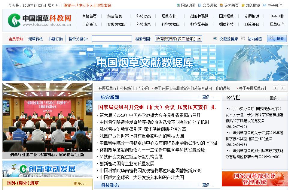 | 网站简介: 中国烟草科教网由国家烟草专卖局科技司主管、中国烟草总公司郑州烟草研究院主办、中国烟草科技信息中心承办。 |