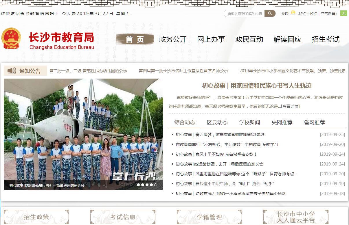 长沙市教育局主要职责:(一)贯彻落实国家、省关于教育工作的法律、法规,起草地方性教育法规草案;拟订全市教育改革与发展战略、方针、政策和规划,并组织实施。(二)负责权限范围内各级各类教育的统筹规划和协调管理,会同有关部门制定权限范围内各级各类学校的设置标准,指导权限范围内各级各类学校的教育教学改革;按有关规定承办普通中小学、中等职业学校、市属普通高等学校的设置、调整、更名的审核、报批工作;负责教育基本信息的统计、分析和发布。(三)负责推进义务教育均衡发展和促进教育公平,统筹指导义务教育、普通高中教育和学前教育、特殊教育、少数民族教育工作;制定基础教育教学基本要求、基本教学文件及评估标准,负责基础教育教材教辅的审定,全面实施素质教育。(四)指导以就业为导向的职业教育的发展与改革,制定教学指导文件和教学评估标准并组织实施;指导中等职业教育教材建设和职业指导工作。(五)统筹指导普通高等教育、成人高等教育、高等教育自学考试和终身教育等工作。(六)统筹管理本系统教育事业经费;参与拟订全市教育经费筹措、教育拨款、教育基本建设投资政策;负责统计和监测全市教育经费的投入和使用情况;负责管理市本级的教育事业经费、人民教育基金和勤工俭学工作;负责制定市本级教育单位基本建设计划;指导、管理全市资助经济困难学生工作;指导和组织实施教育系统内部审计工作。(七)指导权限范围内各级各类学校的思想政治工作、德育工作、体育卫生与艺术教育以及国防教育工作;指导和协调教育系统的稳定工作。(八)依据《中华人民共和国教师法》规定,在职责范围内,主管全市教师工作;贯彻实施各级各类教师资格标准,负责教师师德师风建设、教师资格认定和教师职务评聘工作;会同有关部门研究制定市内各级各类学校编制标准;指导教育系统人才队伍建设。(九)统筹管理各类高等、中等学历教育的招生考试工作;统筹管理各类初中教育、高中教育及中等职业教育学籍工作和学历工作,并会同有关部门制定招生政策和招生计划;参与拟定全市高等学校毕业生就业政策,指导普通高等学校开展毕业生离校前的就业指导和服务工作,指导普通高等学校开展大学生就业创业工作。(十)组织指导教育方面的国际交流与合作,统筹管理出国留学、中外合作办学和外籍人员子女学校,规划、协调、指导汉语国际推广工作;开展与港澳台的教育合作与交流。(十一)按干部管理权限,统筹管理直属单位领导班子和领导干部;指导直属单位党建、宣传、统战和群团工作;负责并指导全市教育系统的纪检监察工作。(十二)组织、指导全市教育督导工作。(十三)统筹管理全市语言文字工作,制定全市语言文字规划并组织实施,指导推广普通话和规范字及普通话师资培训工作。(十四)承担市委教育工作领导小组秘书组以下职责:组织研究全市教育领域党的建设和思想政治建设政策、教育发展战略规划、重大改革方案,协调督促落实市委教育工作领导小组决定事项、工作部署和要求等。(十五)负责市直管学校的安全监督管理,指导区县(市)教育局开展学校安全监督管理工作。(十六)承办市委、市人民政府交办的其他事项。