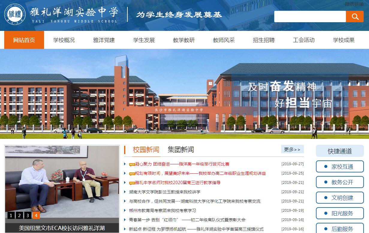 在湖湘文明里,教育的智慧星火,思维之光,革新之气如湘江碧水,奔腾不息,在每个时代筑成华章。110年来的不断求索,当初中西文明碰撞的教育火花,已在湖湘教育的原野燎燎百年,在风云变幻的历史流淌中,成就煌煌盛名;新世纪以来,“经天纬地才能,由学问成就,及时奋发精神,好担当宇宙”的雅礼校歌更是从枫树山出发,奔腾于这个城市的东南西北,蓝白红的校服如星缀苍穹,闪耀在大街小巷,公勤诚朴的雅礼精神已融入这个城市的血脉。一座城、一所学校,一种精神,一个向往。岁月沉淀,时光向前,2017年的春雷唤醒星城大地,也催生一所崭新雅礼学校的昂扬崛起,作为集团化办学战略部署、结构调整的重要举措,百又十年后的雅礼,再次迈开她雄伟的步伐,首次跨越湘江,倾力打造雅礼洋湖中学,涤荡三湘教育风潮,引领品质卓越发展,为推动区域发展,创建国家中心城市贡献自己的新力。一所与国家中心城市以及全国第12个、中部地区首个国家级新区——湘江新区发展相匹配的高品质市属公办完全中学;长沙两型社会建设、洋湖生态新城、总部经济区社会经济发展的教育引擎;现代城市发展理念和学校治理理念下的教育生态社区。学校坐落于长沙市最大最美湿地公园——洋湖湿地生态公园南门旁,6000亩公园美景净收眼底,李自健美术馆、谢子龙影像馆、洋湖雕塑园、体育公园比邻而居。地铁3号线、10余路公交线路穿梭而过,潇湘大道、洋湖大道、湘府路高架、三环线所组成的城市交通网络让出行变得极为便利。学校占地面积150多亩,投资3.74亿,是长沙市最大的中学之一,学校建筑采用环保、节能设计,塑胶跑道、人工草皮、室内装修等均采用多种两型理念和绿色设计实施方案,图书馆、体育馆、实验室等设施设备全市一流。学生食堂、宿舍高标准建设,聘请一线品牌提供后勤服务,让学生吃得放心,住得安心。湘江岸、洋湖边、都市里,宜学、宜居、宜生活,是花园中的最美校园,校园中的最美乐园。雅礼中学全面托管,采用雅礼中学管理模式和课程教学方式,统一办学理念,统一管理标准,统一教学计划,统一考试评价,荟萃集团教育资源之精华。秉承“为学生终身发展奠基”理念,实施“自主教育、个性教育、开放教育”策略,构建尊重个性、贴近生命、走向自主的课程实施体系和多元兼容的评价体系,培养提升学生的“自立品质、家国情怀、国际视野、人文素养、科学精神”,不断呈现学生个体生命气象,让每一位学生都拥有健康健全的人格、融贯中西的智慧以及幸福完整的人生,成为有益于国家、社会的优秀人才。市教育局抽调教育系统年富力强、经验丰富、成绩突出的中青年干部组成领导班子,雅礼中学派出校长、教学副校长、业务管理中层干部和学科骨干教师,初高中教学资源、师资培养与雅礼及集团学校无缝对接,其他教师全部由雅礼中学统一招聘,从全国遴选优秀师资,前期安排在雅礼、南雅等集团学校关键教学岗位跟班学习,不断浸润雅礼文化,积累教学素养。在雅礼110余年的教育征程里,寻找与追求的是生命个体与自然的和谐发展,学校与社会的相融共生。以两型社会建设为出发点,以人才培养为着力点,整合洋湖生态新城和湘江新区自然、社会、历史、人文等资源,以整个洋湖片区、湘江新区和长沙城市为依托,构建新高考背景下符合中学生发展核心素养培育的新型课堂。融入现代城市发展理念,借鉴国内外先进教育思想,突破传统教育发展模式,构建新型的与国际接轨的教育生态社区。同时发挥6年一贯制完全中学优势,持续注入雅礼精神强大内核驱动力量,为生命成长奠定坚实基础,拓展学生未来发展空间。追随国家2020普及高中教育的步伐,站位于构建现代教育的湖湘样本,雅礼洋湖将以全新的视野、全新的理念、全新的基础,建设一所与社会进步、城市发展、教育创新完美融合的高品质现代化学校。未来,她将以更为宏大的视野,不断承续雅礼育人为本、发展素养的光荣传统,绽放教育内涵发展、品质提升、更有活力、更加开放的独特魅力,成为三湘基础教育引领时代发展的新名片。