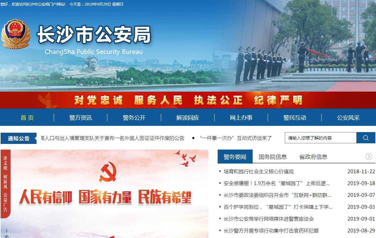 长沙市公安局主要职责:一、贯彻执行党和国家关于公安工作的方针、政策和法律、法规、规章;指导、检查、监督全市公安工作。二、掌握危害国内安全、影响稳定和社会治安的情况,分析社会安全形势,为市委、市政府和上级公安机关决策提供依据。三、负责各类刑事案件的侦查工作;协调处置重大案件(事件)、骚乱,开展禁毒、缉毒工作。四、指导、监督全市公安机关依法查处危害社会治安秩序的行为;负责大型群众文化体育活动安全许可;承担管理集会、游行、示威活动责任;承担依法管理危险物品以及管理特种行业和公共场所的责任;负责爆破作业审批、爆破作业人员许可证核发工作。五、依法管理户口、居民身份证;承担入境出境事务和外国人、华侨、港澳台同胞在长居留、旅行等有关事务的管理责任。六、承担维护全市道路交通安全、交通秩序以及机动车辆、驾驶(人)管理责任,参与查处重大交通事故。七、指导、监督全市消防工作,负责组织实施警卫国家规定的特定人员工作。八、指导和监督全市国家机关、社会团体、企事业单位及重点建设工程的治安保卫工作,组织指导群众性治安保卫、防范工作。九、负责全市公安机关的科学技术工作,组织实施全市公安系统信息技术、刑事技术、网络安全技术等建设,负责全市公共信息网络的安全保护监察工作。十、承担管理全市看守所、拘留所、收容教育所、强制戒毒所等单位的责任,依法对被批准羁押的人员进行监管。依法对被判处管制、拘役、剥夺政治权利的罪犯执行刑罚;对被宣告缓刑、假释的罪犯实行监督、考察;承担市人民政府劳动教养委员会的日常工作。十一、负责全市公安机关装备建设和基础设施建设;负责编制执行年度预决算和公安系统业务经费、专项拨款的分配计划并监督管理。十二、负责全市公安队伍建设和思想政治工作;指导和管理公安机关人员培训、教育、奖惩、优抚及公安宣传工作;负责全市公安民警警衔和警察证件管理;按规定权限审核公安机构和管理干部。十三、指导、协调全市公安机关的警务督察工作;指导、督促、检查全市公安机关的执法活动;查处或督办公安队伍重大违纪案件。十四、组织、指导、协调对恐怖活动的防范、侦查工作。十五、承办市委、市人民政府和上级主管部门交办的其他事项。