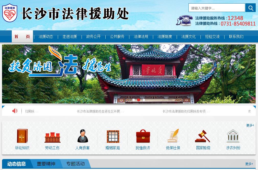 法律援助是指在国家设立的法律援助机构的指导和协调下,律师、公证员、基层法律工作者等法律服务人员为经济困难或特殊案件的当事人,给予免费提供法律帮助的一项法律制度。1997年6月,经长沙市编委批准设立,长沙市法律援助中心成立,隶属长沙市司法局领导,现定编14人。2014年,7月29日,为调整机构管理职能,长沙市法律援助中心更名为长沙市法律援助处。长沙市法律援助处负责指导、管理、协调和组织实施全市法律援助工作。自97年12月挂牌以来,我市法律援助处承办了许多有较大社会影响的大案要案,拥有一批刑事、民事、行政诉讼方面造诣很深和经验丰富的律师。随后,市司法局和市法援处在国务院《法律援助条例》和湖南省《湖南省法律援助条例》的指导下,积极争取党委、政府的支持。2000年底,全市9个县(市)区法律援助机构全部成立。2013年度全市各级政府法律援助拨款达477.27万元。雨花区司法局与区财政局等部门联合发文,在全市率先规定乡镇、街道以0.5万元的拨付标准将法律援助经费纳入乡镇、街道财政预算。开福区70%的乡镇工作站经费列入乡镇财政预算,50%的部门(行业)工作站(点)经费列入单位年度经费支出预算。宁乡县、浏阳市法律援助列入中央专项彩票基金项目,望城县、浏阳市、宁乡县获得了省财政对法律援助的支持。长沙市各级政府的大力支持,确保了法律援助工作的顺利开展。2005年4月22日,司法部法律援助中心、湖南省司法厅与加中法律援助与社区法律服务项目的加拿大执行机构签订合作协议,由加方在三年内分期提供价值165000加元的资金,用于“支持和扩大法律援助和社区法律服务”。而湖南省确定长沙市法律援助处为该项目的示范法律援助中心。我法援处运用该笔经费,为全市市县两级共10个法律援助中心都建设了高标准的当事人私密接待室、律师室,并购买了一批现代化办公设施,配套齐全,为当事人创造了一个良好的咨询求助环境。同时,经过几年的努力,我法援处在全市设置了一批长沙市法律援助绿色通道,扩大法律援助覆盖面,分别为:长沙市妇女儿童法律援助工作站、长沙市青少年法律援助中心、长沙市法律援助中心市总工会工作站、长沙市法律援助中心市残联工作站、农工党长沙市委法律援助工作站、长沙市涉军法律援助工作站、长沙市老龄委法律援助工作站、长沙市侨联法律援助工作站、长沙市外来务工人员法律援助工作站、平塘监狱法律援助工作站、长桥劳教所法律援助工作站、农工党长沙市委法律援助工作站、长沙学院法律援助工作站共计12个专门工作站。截至2014年,全市在工会、团委、妇联、老龄委、残联等单位设立法律援助工作站134个,188个乡镇(街道)、1855个社区(村)全部成立了法律援助工作站,形成了以便民服务窗口为核心、四级服务网络为主体、部门及行业工作站为补充的立体化法律援助服务新格局。2011年到2013年,全市法律援助机构受理各类法律援助事项30926件,其中办理案件数为8835件,接待来信来访咨询数为22091件。援助受援人33158人次,其中女性受援人为7772人次,农民工受援人为6760人次,残疾人受援人为2765人次,未成年人受援人为1996人次,老年人受援人为3683人次。 有效地维护了弱势群体的合法权益,取得了显著的社会效果,使法律援助真正成为了党和政府与广大人民群众联系的“连心桥”。市法律援助处承办的长沙船泊厂港商欺诈性兼并案、长沙摩托车厂拆迁纠纷案、蔡佑兰人身损害赔偿案等多起法律援助案件均产生了较好较大的社会影响。2004年以来,长沙市法律援助处每个工作日还派援助律师到市信访局值班,参与涉法信访接待工作,2013年援助律师接待的涉法信访案件达120件,没有出现回访现象。长沙市法律援助处还在长沙市政务中心添设专岗,派遣专业的援助律师驻岗为到市政府寻求法律帮助的老百姓排忧解难。法律援助工作对于促进我市社会稳定、保障司法人权、维护经济发展的良好环境、宣传法制、树立政府形象起到了非常重要的作用。我市法律援助工作得到了司法部和省司法厅的充分肯定。市法律援助处多次被评为全省法律援助先进单位,先后荣获了全省青少年维权示范岗、全省十佳法律援助机构等荣誉称号。我市法援处在2001年、2008年、2012年分别荣获司法部颁发的第一届、第三届、第四届全国法律援助先进集体,2006年被评为“全国老年维权示范岗”先进单位,2007年被评为全国法律援助“规范与质量”检查活动先进单位。