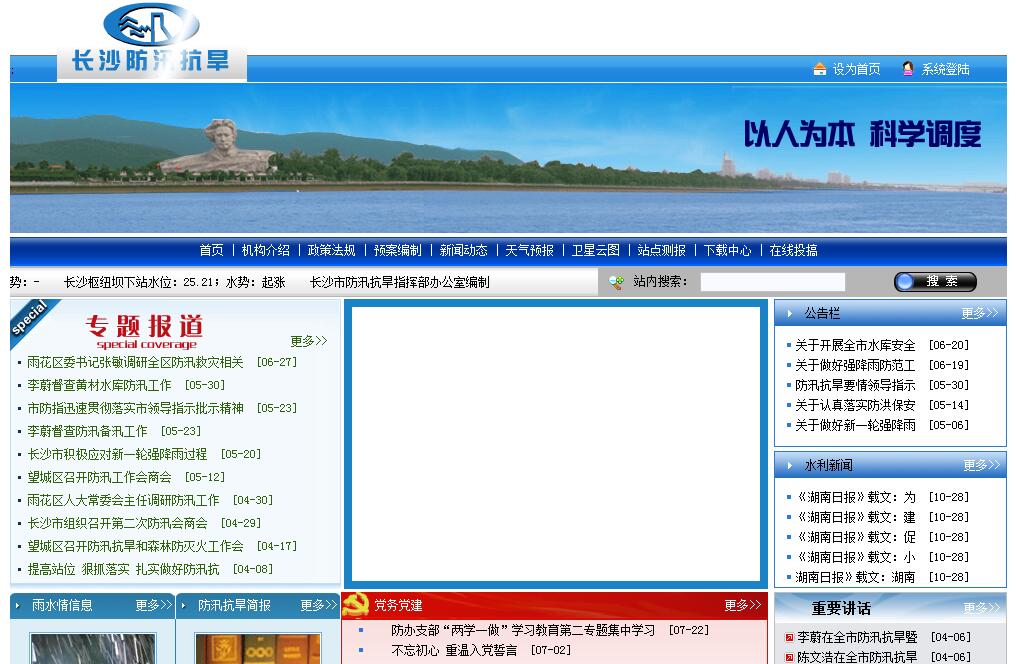 长沙市防汛抗旱指挥部办公室主要职责:1、贯彻执行国家有关防汛工作的方针、政策、法规和法令。2、制定和组织实施各种防御洪水方案,包括:(1)防御特大洪水方案;(2)水库汛期调度方案;(3)在建工程的渡汛方案;(4)暴雨、山洪、泥石流的对策方案。 3、掌握汛期雨情、水情和气象形势,及时了解降雨的地区分布、暴雨强度;江、河、湖、库的水位流量、长短期分析预报;必要时发布洪水预报、警报和汛情公报。4、组织检查防汛准备工作。即每年汛前检查;(1)检查树立常备不懈的防汛意识,克服麻痹思想;(2)检查各类防汛工程是否完好,处险工程完成情况,有无防御洪水方案;(3)检查河道有无阻水障碍及清障完成情况;(4)检查水文报汛预报准备工作;(5)检查防汛物料准备;(6)检查蓄滞洪区安全建设和应急撤离准备工作;(7)检查防汛通信准备工作;(8)检查防汛队伍组织的落实情况;(9)检查备用电源是否正常。 5、负责有关防汛物资的储备、管理和防汛资金的计划管理。6、负责统计掌握洪涝灾害情况。7、负责组织防汛抢险队伍,调配抢险劳力和技术力量。8、督促蓄滞洪区安全建设和应急撤离转移准备工作;9、组织防汛通信和报警系统的建设管理。10、组织汛后检查。11、开展防汛宣传教育和组织培训,推广先进的防汛抢险科学技术。