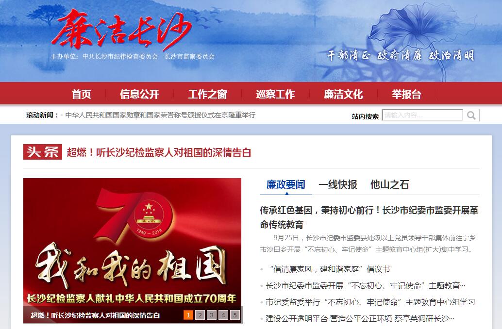 | 网站简介: “廉洁长沙” 是中共长沙市纪律检查委员会、长沙市监察委员会的官方网站。集工作展示、廉政教育、投诉举报、留言互动和纪检监察业务数据库等多功能于一身,是湖南省会长沙反腐倡廉建设新的前沿阵地,是广大群众走进纪委、参与监督、反映诉求的重要渠道,是党员干部接受廉政文化洗礼的心灵园地,全面展示了“阳光纪检”、“开门纪检”、“数字纪检”的形象。 |