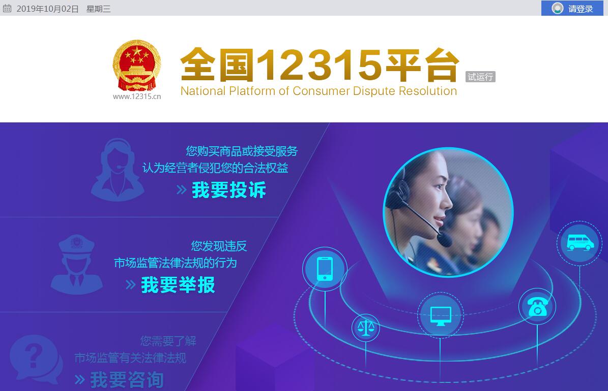 全国12315平台由国家市场监督管理总局主办。