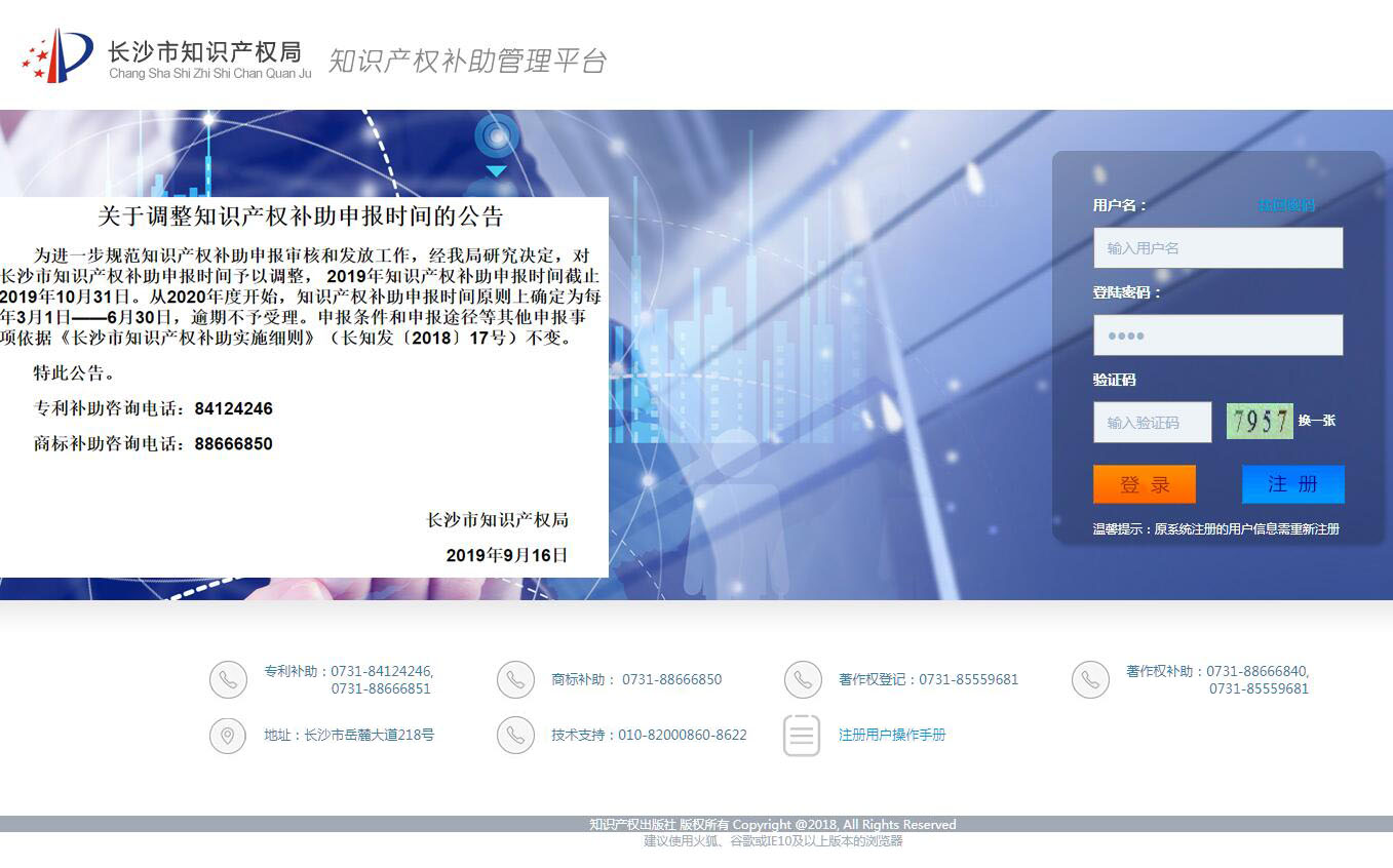 长沙市知识产权补助系统。