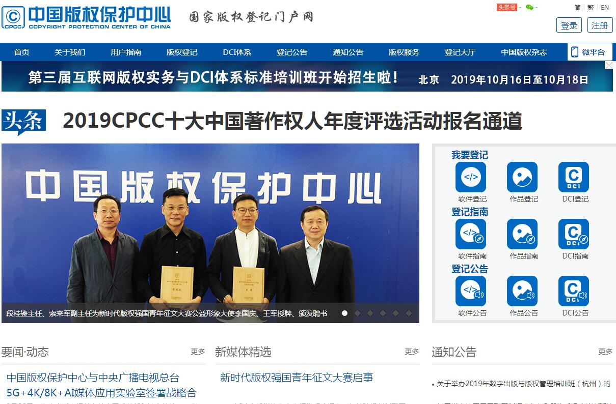 | 网站简介: 中国版权保护中心(中华版权代理中心)是国家新闻出版署、国家版权局直属事业单位。国家版权登记机构,我国唯一的计算机软件著作权登记、著作权质权登记机构。版权鉴定机构,内设中国版权保护中心版权鉴定委员会,进入最高人民法院、北京市高级人民法院鉴定机构名录。首创提出我国自主知识产权的DCI(Digital Copyright Identifier, 数字版权唯一标识符)体系,并以此为核心建构国家互联网版权基础设施。管理中国标准录音制品编码(ISRC)中心。承担全国版权标准化技术委员会秘书处工作。全额投资设立中华版权代理总公司、《中国版权》杂志社有限公司。 |