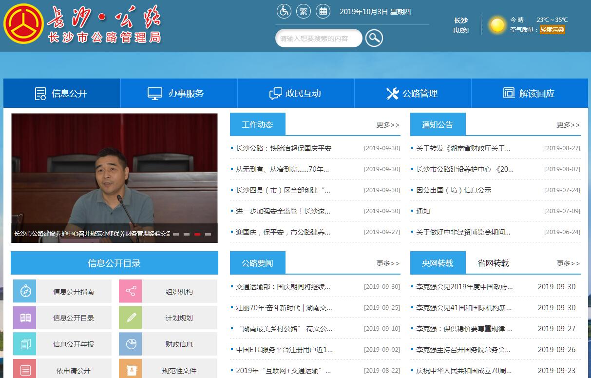 | 网站简介: 长沙市公路管理局为正处级全额拨款事业单位,机关参照《公务员法》管理,主要负责指导、协调、监督全市国道、省道等干线公路和农村公路的建设、养护、管理工作。市局机关内设办公室(宣传处)、计划统计处、财务审计处、干线公路建设处、农村公路建设处、干线公路养护处、农村公路养护处、干线公路路政管理处、农村公路路域环境处、政策法规处、安全科技处、人事教育处12个职能部门和离退办、机关党委、工会等;下属城郊路政执法大队、城郊公路养护服务中心、路网监测与信息中心三个全额拨款事业单位;市局对长沙县、望城区、宁乡市、浏阳市等四区县(市)公路管理局和农村公路管理站(局)实行行业管理。目前,我局管养线路里程为15556公里,包括2170座桥梁和7座隧道。其中国道550公里,省道1559公里,县道2720公里,乡道2682公里,村道8045公里。 |