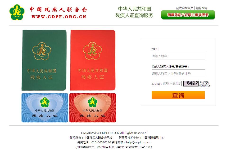 中华人民共和国第二代残疾人证查询服务。