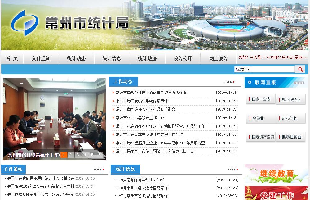 常州市统计局为市政府工作部门。其主要职责是:(一)承担组织领导和综合协调全市统计工作的责任。拟订全市统计政策、规划和基本统计制度,检查监督全市统计法律法规的贯彻实施。(二)组织实施统计法律法规的宣传教育,指导和规范全市统计行政执法工作,依法查处重大统计违法行为。依法审批或备案部门(或地区)统计调查项目,依法监督管理涉外调查活动。(三)按照国家、省统一部署和市委、市政府的要求,会同有关部门组织实施全市人口、经济、农业等重大市情市力普查,提供有关市情市力方面的统计数据。(四)组织实施全市国民经济核算制度和全市投入产出调查,核算全市及各辖市区地区生产总值,整理提供国民经济核算资料,监督管理各地区国民经济核算工作。(五)组织实施农林牧渔业、工业、建筑业、运输邮电业、仓储业、计算机服务和软件业、批发和零售业、住宿和餐饮业,房地产业、租赁和商务服务业、技术服务和地质勘查业、水利和环境及公共设施管理业、居民服务和其他服务业、社会福利业、娱乐业以及公共管理与社会组织等统计调查,收集、汇总、整理和提供有关调查的统计数据。(六)组织实施基本单位、能源、投资、消费、价格、收入、人口、劳动力、社会发展基本情况等基本状况的统计调查和反映社情民意的统计调查,收集、汇总、整理和提供有关调查的统计数据。(七)加强对部门统计工作的业务管理和工作指导,组织实施部门统计工作巡查,归口管理部门统计数据;建立健全部门服务业统计制度,组织协调重点部门开展全行业服务业统计调查;综合整理和提供财政税收、外经外贸、科技、教育、文化、卫生、体育、旅游、资源环境、社会保障、妇女儿童等全市性基本统计数据。(八)组织实施全面小康监测、科学发展评价考核监测、五大产业、高新技术产业、文化产业、民营经济、新兴产业统计方面的工作。对国民经济、社会发展、科技进步和资源环境等情况进行统计分析、统计预测和统计监督;收集提供省内及国内部分城市经济社会发展情况的统计资料,向市委、市政府及有关部门提供统计信息和咨询建议。(九)改革现行统计方法制度,建立健全满足国家、服务地方的统计指标体系和统计调查方法;指导专业统计基础工作、统计基层业务基础建设,建立健全重要统计数据审核、监控和评估体系。(十)统一管理、公布全市性基本统计资料。定期发布全市国民经济和社会发展情况统计信息,检查、审定、管理各部门发布的、新闻媒介引用的全市国民经济和社会发展的重要数据。(十一)负责全市统计信息工程建设的规划制定、组织实施和管理维护。建立健全和管理全市统计信息化系统和统计数据库系统,组织制定各地区、各部门统计数据库和网络的基本标准及运行规则,指导全市统计信息化系统建设。(十二)指导全市统计专业技术队伍建设,制定全市统计干部继续教育规划,组织指导全市统计干部教育和培训,会同有关部门组织管理全市统计专业资格考试、专业技术职务评聘和从业资格认定工作。(十三)承办市委、市政府交办的其他事项。