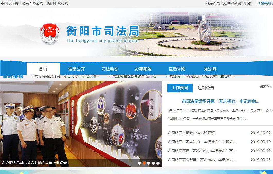衡阳市司法局主要职责:1.贯彻执行国家有关司法行政工作的方针、政策和法律法规,编制全市司法行政发展中、长期规划和年度计划并监督实施。2.受市人大和市人民政府的委托,参与有关规范性文件草案的起草;会同有关部门监督、检查司法行政方面的法律、法规和规章的执行情况。3.监督管理本级监狱执行刑罚、改造罪犯工作;管理衡州监狱并承担相应责任。4.指导管理司法行政系统强制戒毒、戒毒康复工作;管理衡阳市强制隔离戒毒所并承担相应责任;指导、支持全市社区戒毒(康复)工作。5.制定全市普法、依法治理工作中、长期规划和年度工作计划,并组织实施;参与社会治安综合治理工作。6.负责指导监督全市律师工作和公证工作并承担相应责任;负责管理公证机构。7.指导监督基层司法所建设和人民调解、基层法律服务工作。8.指导管理全市社区矫正工作;会同有关部门负责对刑满释放和解除社区矫正人员的安置帮教工作。9.指导全市公共法律服务工作;监督管理全市法律援助工作。10.负责组织实施全市国家统一法律执业资格考试工作。11.负责仲裁登记呈报工作。12.选任管理人民监督员工作。13.指导管理全市司法鉴定工作。14.指导全市司法行政系统的队伍建设、党组织建设和思想政治工作;组织开展法学教育;负责司法行政干部培训、考核奖励;管理市司法干部培训中心;指导管理司法行政系统的警务和警衔评授工作;协助县市区管理司法局领导干部。15.指导管理全市司法行政系统的计划财务物资装备;管理所属单位国有资产。16.承办市人民政府交办的其他事项。