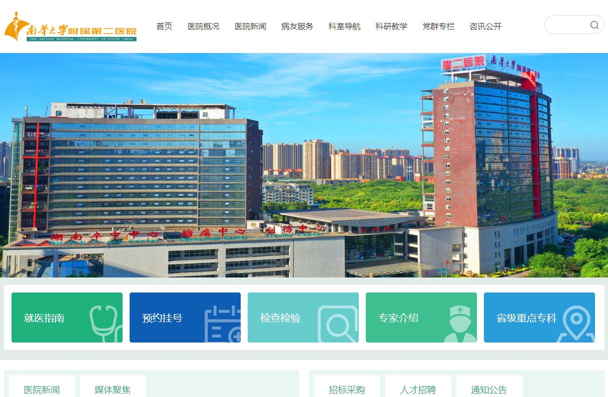 南华大学附属第二医院始建于1949年,原名衡阳市立人民医院,其后曾改名为衡阳市立第一人民医院、衡阳医专附属医院、衡阳医学院附属医院、2000年更名为南华大学附属第二医院,是湖南省继湘雅附一、附二医院之后的第三家教学医院,是一所集医疗、教学、科研为一体的大型综合性三级甲等医院,是省、市、县职工及居民医保、工伤保险、铁路医保、新型农村合作医疗定点医院,是全国百姓放心医院。经过近70年的发展,现已形成新院、东院(胸心医学中心)和一所股份制生殖医院的格局。医院建筑别具风格,环境优雅,享有“园林式医院”之美称。两院区总占地150多亩,总建筑面积达16万平方米,合计编制床位1850张。现有在岗职工2100人,拥有高级职称人员303人,博士34人,硕士468人,硕士生导师70余人。医院医疗技术一流,专科特色明显。首批获得卫生部批准开展人体器官移植资质,成功开展了国内首例ABO/Rh双血型不相容肾脏移植术,在衡阳市率先开展角膜移植、造血干细胞移植、肝移植等技术。泌尿外科、神经外科、普外科、神经内科、消化内科、呼吸内科及护理专业为省级临床重点(建设)专业;泌尿外科、消化内科、神经内科和重症医学科系湖南省厅直临床重点专科。在湘南地区率先成立成人及儿童重症医学科,危重症患者救治的技术力量、支持平台和诊疗水平居省内领先地位。消化系统疾病内镜下治疗、心脑血管疾病介入治疗、胸腔镜、支气管镜镜下治疗、血液净化、关节置换、脊柱疾病微创治疗、无痛治疗等技术均位居省内先进水平。五官专业(眼科、眼视光专科、耳鼻咽喉科、口腔科)特色享誉湘南地区。普外专业细分为肝胆脾胰外科、胃肠外科、乳甲外科、血管外科、肛肠外科等特色专科。胸心外科、神经外科、妇产科、心血管内科、呼吸内科、肾内科、内分泌科、生殖专科,技术水平居衡阳市领先水平。医院积极整合资源,发挥学科特色优势,努力推进胸痛中心、卒中中心、创伤中心、危重孕产妇救治中心、危重儿童和新生儿救治中心等五大中心的建设,打造完善的医疗急救体系。东院胸心医学中心与北京阜外心脏病医院合作,是湘南地区唯一的胸心专科医院,让广大心脏病患者足不出市就能享受到世界一流、国内顶尖的医疗服务。医院设备一流,拥有美国GE 3.0T磁共振和GE1.5T磁共振、PET-CT、飞利浦256层iCT、高能直线加速器和陀螺刀、数字减影X光机(DSA)、多功能数字胃肠机、全数字化移动式X线摄影系统(移动DR)、数字化X光机(DR)、全数字化乳腺机(钼靶机)、四维多普勒彩色超声、全自动生化分析仪、系列电子内窥镜、前列腺汽化电切镜、德国蔡司全飞秒激光治疗仪、高压氧舱等高精尖设备。近五年来,承担了国家自然科学基金项目6项,省部级重点项目、优秀青年基金、专科项目、一般项目等100余项,获得基金资助达1000多万元。在国内外核心刊物上发表学术论文1000余篇,获教学、科研成果10余项。我院是南华大学最早的直属型附属医院,每年承担着200多名硕士研究生的教育培养任务,是临床医学一级学科硕士学位授权点,2018年获临床医学一级学科博士学位授权点,并于2019年开始招收博士研究生。南华附二人始终秉承“医诚术精,行方智圆”的办院理念,坚持“病人为尊、质量为先、安全为重”的服务理念,坚持以人为本、以病人为中心,团结拼搏、艰苦奋斗、锐意进取、不断创新的办院精神,以真诚的微笑,精湛的医术,力争把医院建设成“国内知名、省内先进、特色鲜明的医教研三位一体的综合性医院”。选择南华附二,感受人文关怀!