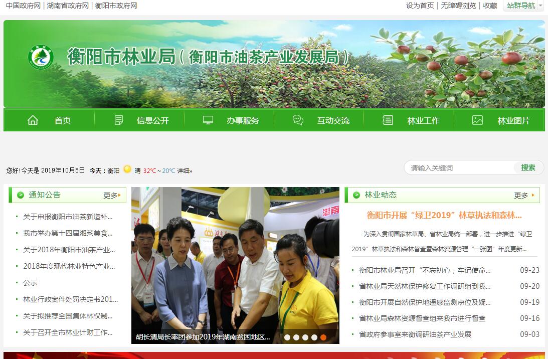 衡阳市林业局主要职责:(一)负责全市林业及其生态建设的监督管理。拟订林业及其生态建设的方针政策、发展战略、中长期规划和起草地方性林业行政规范性文件草案,并监督实施。参与拟订有关市级标准和规程并指导实施。组织开展森林资源、陆生野生动植物资源、湿地和荒漠的调查、动态监测和统计。承担林业生态文明建设的有关工作。(二)组织、协调、指导和监督全市造林绿化工作。制定全市造林绿化的指导性计划,组织拟订相关市级标准和规程并监督执行。指导、监管各类生态公益林和商品林的培育工作,组织指导林木种苗、林木花卉工作,承担植树造林、封山育林和以植树种草等生物措施防治水土流失工作,指导、监督全民义务植树、造林绿化工作。承担林业应对气候变化的相关工作。承担市绿化委员会的具体工作。(三)承担森林资源保护发展监督管理的责任。组织、指导、监督林业资源保护管理。组织编制全市森林采伐限额,报上级批准后监督执行,监督检查林木、竹木凭证采伐、运输;负责市区林地、林权管理,组织、指导县级林地、林权管理工作,组织实施林权登记、发证工作,拟订林地保护利用规划并指导实施,依法承担应由国家、省、市政府批准的林地征用、占用的审核或审批。协助管理重点国有林区的国有森林资源,承担市管国有林区的国有森林资源资产产权变动的审核工作。(四)组织、协调、指导和监督全市湿地保护工作。拟订湿地保护的有关市级标准和规定,拟订全市性、区域性湿地保护规划。组织实施建立湿地保护小区、湿地公园等保护管理工作。组织、监督湿地的合理利用。组织、协调全市湿地保护和有关国际湿地公约的履约工作。(五)组织、协调、指导和监督全市石漠化防治工作。组织拟订全市防沙治沙、石漠化防治及沙化土地封禁保护区建设规划,参与拟订相关市级标准和规定并监督实施,监督沙化土地的合理利用,组织、指导建设项目对土地沙化影响的审核,组织、指导沙化灾害预测预报和应急处置。(六)组织、指导陆生野生动植物资源的保护和合理开发利用。依法组织、指导陆生野生动植物的救护繁殖、栖息地恢复发展、疫源疫病监测,监督管理全市陆生野生动植物猎捕或采集、驯养繁殖或培植、经营利用,监督管理野生动植物进出口。负责濒危物种进出口管理和国家保护的野生动物、珍稀树种木材、珍稀野生动植物及其产品的出口审核、申报工作。(七)负责林业系统自然保护区的监督管理。在国家和省市级自然保护区区划、规划原则的指导下,依法指导森林、湿地、荒漠化和陆生野生动物类型自然保护区的建设和管理,监督管理林业生物种质资源、林业转基因生物安全、植物新品种保护。按分工负责生物多样性保护的有关工作。(八)承担推进林业改革,维护农民经营林业的合法权益的责任。拟订集体林权制度等重大林业改革意见并指导监督实施。拟订全市农村林业发展、维护农民经营林业合法权益的政策措施,指导、监督农村林地承包经营和林权流转,协助林权纠纷调处和林地承包合同纠纷仲裁。依法负责退耕还林工作。指导国有林场(苗圃)、集体林场、森林公园和基层林业工作机构的建设和管理。(九)制定全市林业产业发展政策,合理调整林业产业发展布局,促进林业产业协调发展。监督检查各产业对森林、湿地、荒漠和陆生野生动植物资源的开发利用。制定林业资源优化配置政策,按照国家、省市有关规定,拟订林业产业市级标准并监督实施,组织指导林产品质量监督,指导赴境外森林资源开发的有关工作。指导山区综合开发。负责油茶等经济树种的开发利用工作。(十)承担组织、协调、指导、监督全市森林防火工作的责任。组织、协调、指导武装森林警察部队和专业森林扑火队伍开展防扑火工作,承担市森林防火指挥部的具体工作。承担林业行政执法监管的责任,指导全市森林公安工作,监督管理森林公安队伍,承担全市林业重大违法案件的查处和全市林业违法案件的查处指导工作。承担、指导林业有害生物的防治、检疫工作。(十一)拟订全市林业发展战略、中长期发展规划并组织实施。研究提出林业发展的经济调节意见以及林业产业发展的有关政策建议。监管国有林业资产,管理市级林业资金,监督全市林业资金的管理和使用。组织申报全市林业建设重点工程项目计划,指导管理全市林业基本建设;组织、指导林业及其生态建设的生态补偿制度的建立和实施。编制部门预算并组织实施,负责提出林业固定资产投资规模和方向、市级财政性资金安排建议,按市政府规定的权限,审批、核准市级规划内和年度计划内固定资产投资项目。编制全市林业及其生态建设的年度生产计划。(十二)组织、指导林业及其生态建设的科技和外事工作,指导全市林业队伍的建设。(十三)承办市人民政府交办的其他事项。