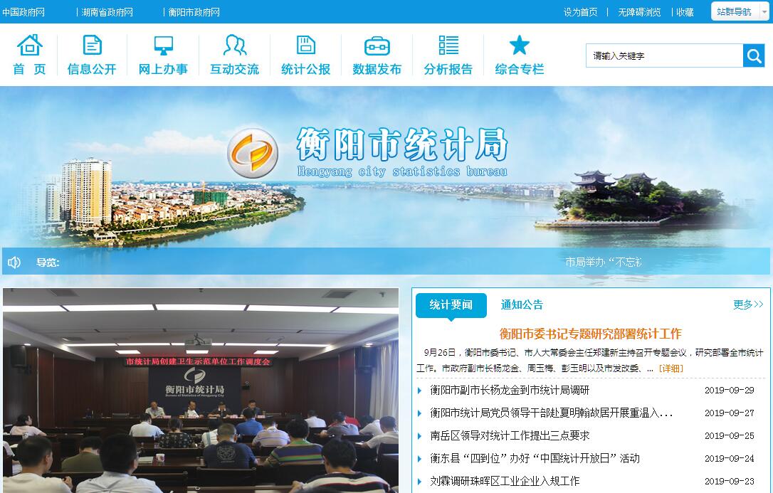 衡阳市统计局是主管全市统计和国民经济核算工作的市人民政府工作机构,其主要职责是:(一)贯彻执行国家、省统计工作的方针、政策和统计法律、法规,完成国家、省统计调查任务;检查监督统计法规的实施情况,查处各类统计违法行为。(二)制定并组织实施全市统计改革和统计现代化建设规划及统计调查计划;建立健全全市国民经济核算体系和统计指标体系。(三)指导和协调全市统计业务工作,组织开展全市性的市情市力普查及有关专项调查;审核市直各有关部门的统计调查计划及其调查方案。(四)为市委、市人民政府制订政策、编制国民经济和社会发展规划提供统计资料,并对全市国民经济、科技进步和社会发展等情况进行统计分析、统计预测、统计检查和监督,向市委、市人民政府及其有关部门提供统计信息和咨询建议。(五)统一核定、管理、公布全市经济、社会、科技的基本统计资料,定期发布全市国民经济和社会发展情况统计公报以及有关普查和专项调查公报;发布社会经济统计信息。(六)建立健全和管理全市统计信息自动化系统和统计数据库体系;指导各基层单位加强统计基础建设。(七)管理或代为管理城市、农村、企业调查队,组织协调全市城市、农村和企业调查工作。(八)统一管理乡(含街道)以上政府统计部门的统计事业费;协助区、县(市)管理和考核区、县(市)统计局正、副局长;全同有关部门承办全市统计专业资格考试和职务评审有关工作;组织指导全市统计科研、统计教育、统计宣传工作。(九)承办市委、市人民政府和上级主管部门交办的其他事项。