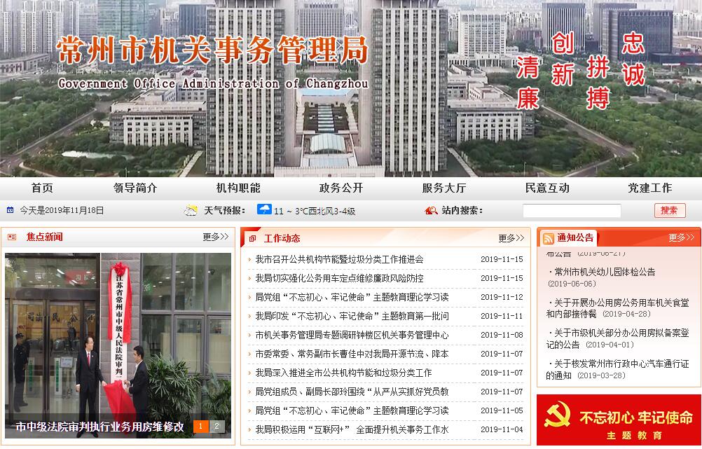 常州市机关事务管理局主要职责:(一)负责市级机关事务的管理、保障、服务工作。拟订市级机关事务管理工作的相关政策、规定、制度和办法,并组织实施。指导全市机关事务管理工作。(二)按规定承担部分市级行政事业单位国有资产管理工作。(三)负责部分市级机关和事业单位的财务、会计工作。(四)会同有关部门负责市级机关公务用车的编制、配备、更新、处置和维修定点工作。(五)负责市级机关房地产综合管理,制定相关管理制度并组织实施;负责市级机关行政用房的产权、基建、购置、大修改造、使用调配和处置的统一管理。(六)负责市级机关有关部门住房制度改革工作,拟订实施方案和具体办法,组织实施住房货币化分配工作,管理、审核、发放老职工住房补贴经费。(七)负责拟定市级领导服务保障有关规章制度并组织实施。负责有关市领导的住房及相关服务工作。(八)负责市级公共机构节能管理工作。会同有关部门推进、指导、协调、监督全市公共机构节能工作。(九)会同有关部门拟定市级机关后勤体制改革政策、制度并监督实施。实施对局属事业单位的管理和监督,增强后勤服务社会化、市场化能力。(十)承担市四套班子有关会议的会务保障工作,履行市委、市政府的大型会议及重大活动的后勤保障职能。(十一)负责市级机关办公区的安全保卫、环境绿化、爱国卫生、计划生育等工作。(十二)承办市委、市人大、市政府、市政协交办的其他事项。