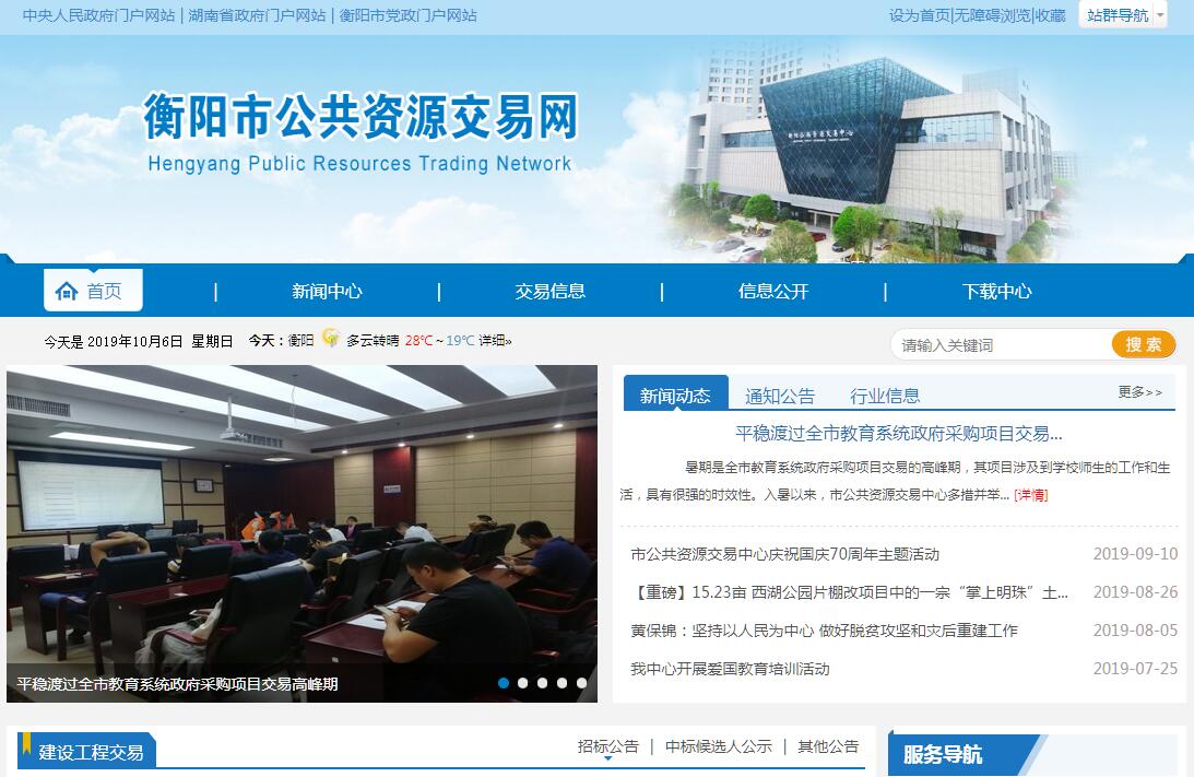 根据国、省深入推进公共资源交易体制机制改革、建立现代市场交易体系要求,经市委、市政府批准同意,整合全市分散设立的公共资源交易平台及场所资源,组建衡阳市公共资源交易中心。交易中心成立于2015年5月,是市人民政府直属正处级公益一类事业单位,内设办公室、组织人事科、财务科、技术信息科、建设工程交易科、政府采购交易科、国土资源交易科、国有产权交易科、法律事务科等9个科室,人员编制53人。交易中心位于衡阳市蒸德大厦,场地总面积1.6万余平米,其中办公区设蒸德大厦主楼15—16楼,面积2000余平方米;交易区设蒸德大厦裙楼1—4层,面积1.4万平方米,内设公共服务区、开标区、评标区、拍卖大厅、电子竞价室、谈判询价室、专家过夜评标休息区、监控区及其他配套功能区,配备了综合信息发布系统、电子监控系统、同步传声系统和多媒体展示系统,评审专家抽取系统、保证金收退系统等8大网络子系统正在加快建设中,可实现远程异地评标、大数据分析等全程网上运行,软硬件设施配备达到全省一流水平,完全满足全市各级各类项目交易活动需求。交易中心是全市统一的公共资源交易平台,负责组织市域范围内的工程建设项目招投标、土地使用权和矿业权出让、国有产权交易、政府采购、医疗器械耗材采购和其他公共资源交易活动,主要职责是:负责市公共资源交易平台及信息网络系统建设、运行管理;为进入市公共资源交易平台的各类公共资源交易活动提供场所、设施和服务;拟订公共资源进场交易的交易流程、操作规程和现场管理制度,参与制定、修订全市公共资源交易监督管理办法和公共资源进场交易目录;组织平台内交易活动,负责查验进场交易项目相关手续及参与交易活动的各方主体资格;负责收集、存储和发布各类公共资源交易信息,为市场主体提供信息咨询服务;为行业监管、行政监察提供平台服务,协助配合行政监督部门、纪检监察机关的执法工作;负责对参与平台内交易活动的相关人员、机构的活动情况进行评估;负责记录、留存违反交易现场管理制度行为的证据资料,及时报告交易活动中的违法违规行为,并协助调查;承担评标专家抽取有关工作;负责对纳入集中采购目录的政府采购项目实施代理采购。衡阳市公共资源交易中心将秉承“创新、务实、为民、清廉”的宗旨,以一流的管理、一流的队伍、一流的服务,着力打造规则统一、公开透明、服务高效、监督规范的公共资源交易平台。热烈欢迎广大交易主体前来中心交易,我们将竭诚提供服务,虚心接受监督,不断提升服务管理水平,为建设“五个新衡阳”,推进全市经济社会发展作出积极贡献。