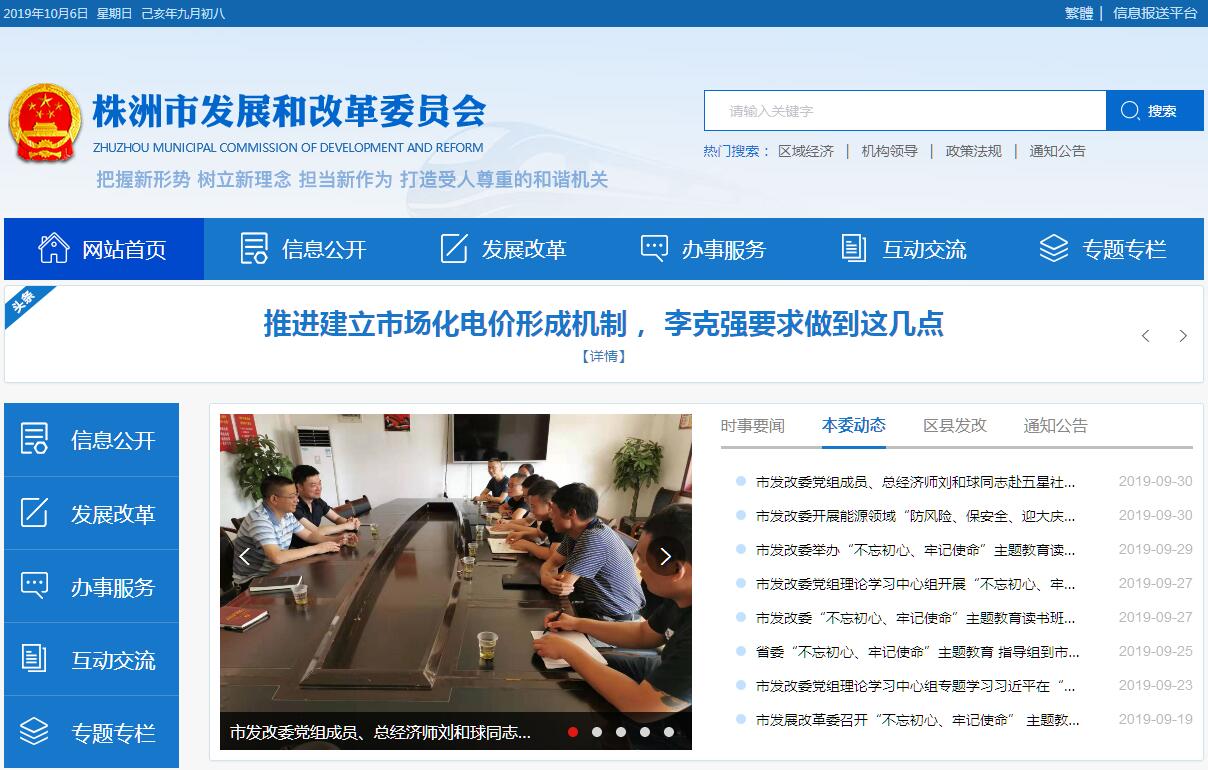 株洲市发展和改革委员会是市人民政府的工作部门,其主要职责如下:(一)拟订并组织实施全市国民经济和社会发展战略、中长期规划和年度计划,统筹协调相关总体规划、区域规划、主体功能区规划与专项规划;提出全市国民经济发展、价格总水平调控和优化重大经济结构的目标、政策,提出综合运用各种经济手段和政策的建议,受市人民政府委托向市人民代表大会提交国民经济和社会发展计划的报告。(二)研究全市宏观经济运行、总量平衡、经济安全和总体产业安全等重要问题,提出落实国家宏观调控政策的建议,协调解决经济运行中的重大问题,调节国民经济运行。(三)汇总社会资金总体运行情况,参与制定财政、金融、土地政策并综合分析政策执行效果;承担全口径外债资金的总量控制、结构优化和监测工作;会同有关部门完善宏观调控协调机制,统筹推进产业、创业等投资基金的发展和制度建设;承担企业债券发行的初审和申报工作,监督发债资金使用。(四)指导推进和综合协调全市经济体制改革,研究全市经济体制改革和对外开放重大问题;组织拟订综合性经济体制改革方案,协调有关专项经济体制改革方案;指导经济体制改革试点和改革试验区工作,参与协调推进“两型”社会建设综合配套改革试验区工作。(五)拟订全市全社会固定资产投资总规模和投资结构的调控目标、政策及措施;统筹安排市级财政性建设资金和投资项目,编制下达政府投资项目年度计划;按规定权限审批、核准、审核、备案跨地区、跨行业、跨领域和涉及综合平衡、重大布局的重大建设项目、外资项目、境外投资项目;研究提出全市利用外资和境外投资的规划、总量平衡和结构优化的目标和政策;指导和监督国外贷款建设资金的使用,引导民间投资方向;牵头组织编制特重大自然灾害的灾后恢复重建规划,协调有关重大问题;研究提出市重点建设项目计划,组织开展重大建设项目稽察;承担政府投资项目代建制实施的指导、协调和监督管理工作;负责组织对政府投资项目进行评审。(六)组织拟订综合性产业发展规划和政策,负责协调第一、二、三产业发展的重大问题并衔接平衡相关发展规划和重大政策,负责综合交通运输体系规划与国民经济和社会发展规划的衔接平衡;协调农业和农村经济社会发展的重大问题;组织拟订发展战略性新兴产业规划,研究提出新型工业化和产业集群发展的政策措施;会同有关部门研究拟订高新技术产业、服务业发展规划和重大政策,实施高新技术产业发展的宏观指导,协调解决重大技术装备推广应用等方面的重大问题。(七)贯彻落实国家中部崛起、长江经济带开发建设的政策措施;组织编制主体功能区规划、区域规划并协调实施;研究制定统筹促进长株潭城市群协调发展和我市罗霄山片区、老少边穷地区加快发展的规划和重大政策;拟订并组织实施全市以工代赈规划和计划;参与拟订全市城镇化发展规划和重大政策措施;组织编制全市产业园区(功能区)发展规划,拟订促进发展的政策;负责产业园区(功能区)综合协调工作;统筹协调区域合作,承担市援藏和对口支援有关工作。(八)负责重要商品总量平衡和宏观调控工作,编制重要商品、工业品和原材料进出口总量平衡计划,组织实施粮食、棉花等进出口计划,并监督计划执行;拟订重要战略物资储备规划,负责组织收储、动用、轮换和管理,会同有关部门管理粮食、化肥等储备;牵头负责全市物流业发展工作,拟订现代物流业发展规划,协调物流业发展重大布局。(九)负责社会发展与国民经济发展的政策衔接;组织拟订社会发展总体规划和年度计划;拟订人口发展规划和年度计划;参与拟订科学技术、教育、文化、卫生、民政等发展政策;统筹推进基本公共服务体系建设和收入分配制度改革;研究提出促进就业、完善社会保障与经济协调发展的政策建议;协调社会事业发展和改革中的重大问题及政策;参与推进深化医药卫生体制改革工作。(十)研究提出全市能源发展战略、规划和政策,统筹协调和优化能源结构;监测分析能源发展状况、运行和市场供求情况,做好全市能源的供需总量的平衡;提出推进能源体制改革的意见,协调相关重大问题,牵头新能源和可再生能源发展工作。(十一)研究分析经济社会与资源、环境协调发展的重大问题,提出能源消费总量控制目标的建议,牵头拟订能源消费总量控制工作方案并组织实施;负责节能减排的综合协调工作,组织拟订发展循环经济、能源资源节约和综合利用规划、政策并协调实施,负责节能监管工作;参与编制生态文明建设、环境保护规划,协调生态建设、能源资源节约和综合利用的重大问题,会同有关部门提出建立健全生态补偿机制的政策措施;综合协调节能环保产业和清洁生产促进有关工作;完善固定资产投资项目节能评估和审查制度;组织拟订全市应对气候变化规划和政策并协调实施。(十二)研究拟订有关价格政策和重大价格改革方案,并负责组织实施;监测、分析市场价格形势,组织实施价格总水平调控;协调和管理全市商品价格、服务价格和行政事业性收费;负责对重大自然灾害和特殊时期实施临时价格干预措施;负责价格调节基金的征收和管理;指导全市价格监督检查工作,依法查处价格违法行为;负责价格成本调查和监审。(十三)研究制定推进社会信用体系建设