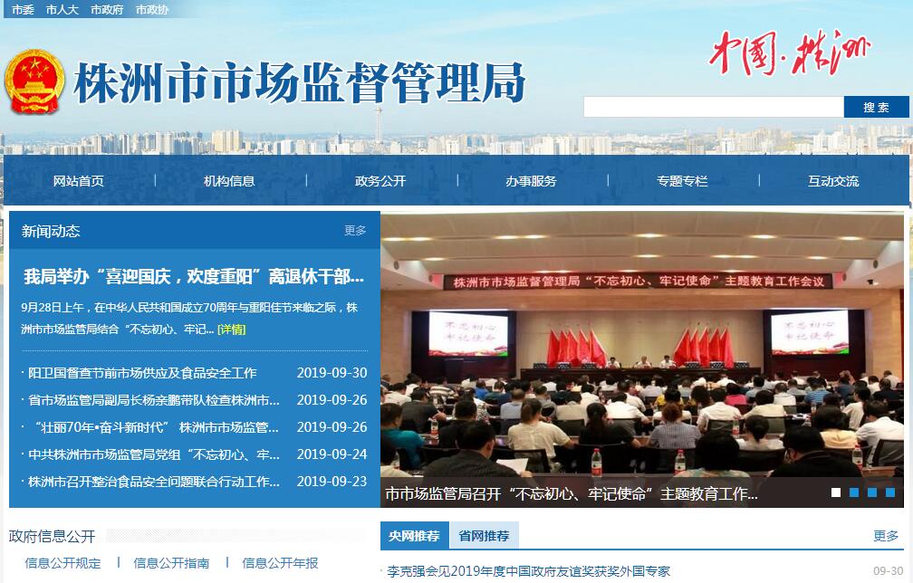 | 网站简介: 根据《株洲市机构改革实施方案》,株洲市市场监督管理局作为市政府工作部门,将市工商行政管理局、市质量技术监督局、市食品药品监督管理局、市发展和改革委员会的价格监督检查和反垄断执法职责、市商务和粮食局的经营者集中反垄断执法职责、市科学技术局的知识产权管理职责进行整合。统一市场监管,进一步推进市场综合监管执法、加强产品质量安全监管,营造诚实守信、公平竞争的市场环境,优化完善市场监管体制和知识产权管理体制。深化市场监管体制改革,是落实中央、省、市机构改革要求,着眼全市发展大局作出的决策部署;是推进国家治理体系和治理能力现代化的重大举措;也是适应政府职能转变、维护市场公平竞争、推动经济高质量发展的迫切需要。 |