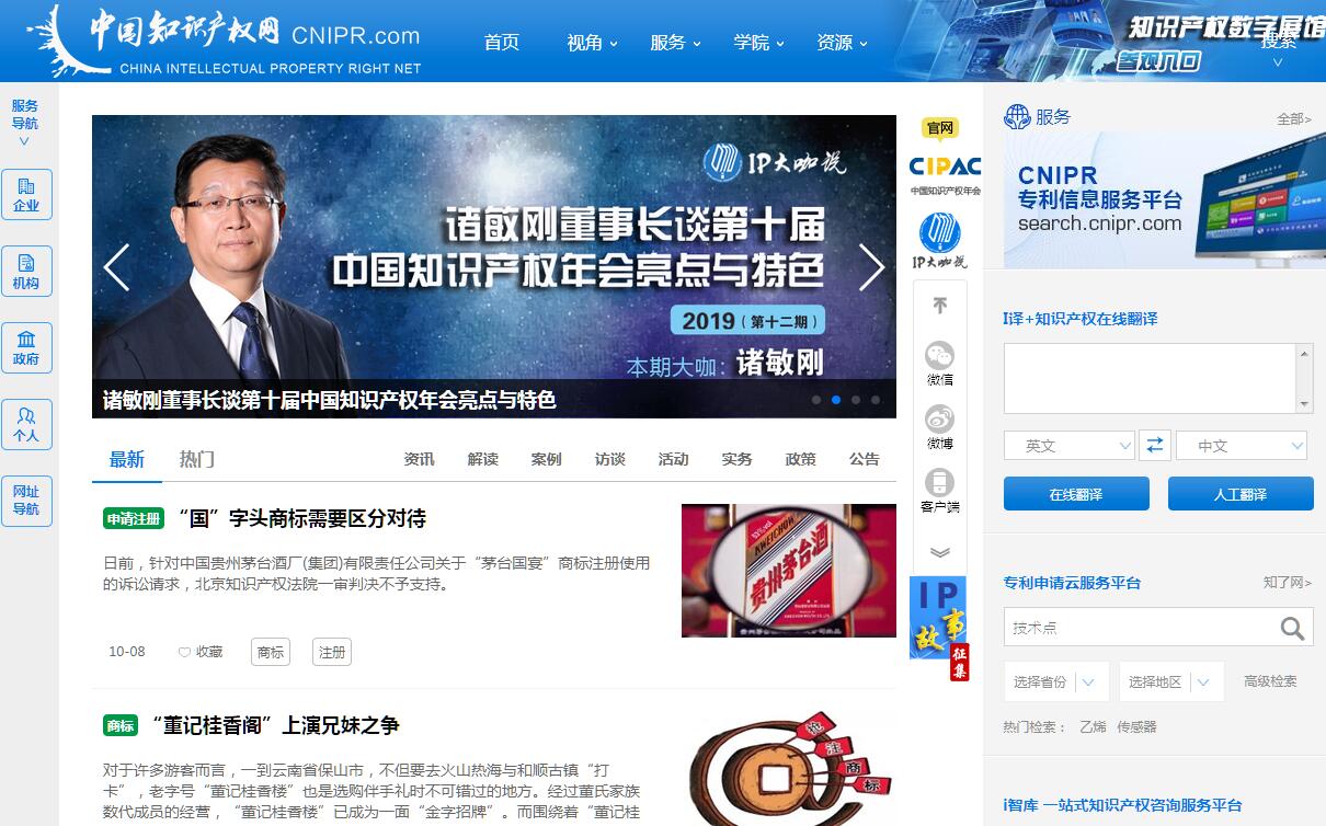 | 网站简介: 中国知识产权网(www.cnipr.com)于1999年由知识产权出版社有限责任公司创办,建站最初目的是方便公众检阅中国专利文献。随着互联网知识产权事业的发展,网站逐渐发展成为中英文站点,内容涵盖行业资讯、视角解读、政策法规、案例评析、产品服务、学院培训、资源分享、社区论坛为一体的覆盖知识产权全产业链服务流程的一站式服务平台。在媒体融合发展方面,施行“多媒介、跨平台”的传播形式,以大数据资源为基础,一次采集、多种生成、多元传播,以多平台产品为支撑,逐渐发展成为全产业链知识产权现代传播体系。2011年在新浪微博创建“中国知识产权网”官方微博,2013年开发“智慧IP”App(iOS版和安卓版本)供公众免费检索专利、查阅行业资讯等,同年创建“CNIPR”微信公众号。 |