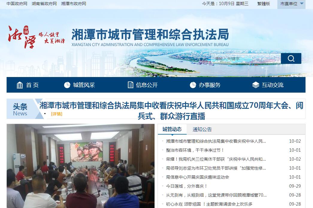 湘潭市城市管理和综合执法局(以下简称“市城管局”)于2019年1月29日挂牌成立,并加挂湘潭市城市管理委员会办公室的牌子,两块牌子一套人马,是湘潭市人民政府城市管理行政主管部门。其主要职责是:(一)贯彻实施国家、省有关城市管理方面的方针政策和法律法规;拟订城市市容和环境卫生、园林绿化、雕塑、照明、城市步行和自行车交通系统,城区户外广告设置管理,城镇燃气和全市风景名胜区等方面的政策、规章制度等规范性文件,并组织实施和监督管理。(二)拟订湘潭市城市管理发展规划,组织编制和实施城市市容和环境卫生、园林绿化、雕塑、照明、城市步行和自行车交通系统,城区户外广告设置管理,城镇燃气和全市风景名胜区等行业发展规划,并组织实施和监督管理。(三)负责市城市管理委员会日常工作;拟订并监督实施全市城市管理工作目标、标准和相关制度;负责组织对承担城市管理职责的市直部门和城区、园区的考核工作;负责全市城市管理和行政执法工作的统筹协调、指导监督等工作;负责全市城市管理行政执法业务培训、考核、评比工作。(四)负责市容和环境卫生、园林绿化、雕塑、照明、城市步行和自行车交通系统和城镇燃气等市政公用事业设施的建设与维护;参与城市相应的公用设施、市政工程的规划编制、设计审核、竣工验收和项目后评估工作;负责相应公用设施、市政工程交接和管理工作;负责对城区、园区城市管理相关基础设施建设与维护项目进行指导、协调、检查监督。(五)负责对授权范围内有关市政公用事业的特许经营权的监督管理工作。(六)负责职责范围内的城市维护管理资金年度预算编报工作;负责职责范围内城市维护费的管理和使用。(七)负责指导、监督全市城市园林绿化工作,负责市城区城市建设项目配套绿化工程的设计方案审批、施工质量监督、竣工验收备案和交接工作;负责市城区城市绿线绿章和异地绿化的组织实施工作;负责编制和修订城市绿地系统规划;负责权限内园林绿化企业资质核准的相关工作;负责全市风景名胜区的管理;负责城市古树名木、城市雕塑的管理;负责城区全民义务植树工作的组织实施和指导推进城区社会绿化工作。(八)负责城市园林绿化、城市照明、城镇燃气、市管公园、广场的市容环境及城区户外广告的行政执法和各园区范围内的相对集中行政处罚权工作。(九)协助做好全市数字城市平台的建设工作,负责数字城管系统的运营与管理。负责指导各县市区数字化城市管理工作。(十)负责城市生活垃圾、建筑垃圾的管理工作。(十一)承办市政府交办的其它事项。