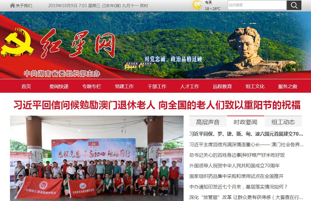 | 网站简介: 红星网是中共湖南省委组织部门户网站,及时传达中央和省委精神、反映组织工作经验、回应党员干部人才和广大群众关切是我们办网的主旨。我们的目标是把网站建设成为全省最权威的组织工作信息发布平台、最优质的党员干部人才教育管理服务平台、最便捷的基层党组织和党员群众互动交流平台,成为网络空间激发正能量、激励广大党员干部人才和群众建功立业的坚强阵地。欢迎您登陆红星网,我们的网址是:http://www.hxw.gov.cn(或http://www.redstar.gov.cn或http://www.hongxingwang.gov.cn)。 |
