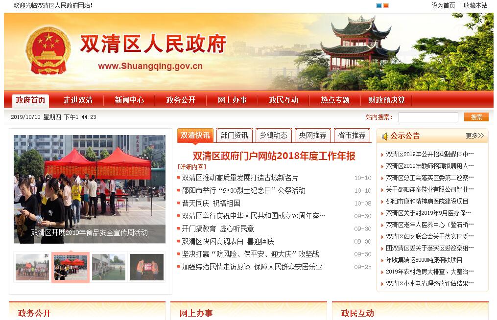 双清区,位于邵阳市区东南部,东邻邵东县、东北部连接新邵县,西南与大祥区一衣带水,以邵水为界;西北与北塔区隔江相望,以资江为界。因宝庆名景“双江秋月”点缀其间而得名,总面积139.6平方公里,辖6个乡(镇)、6个街道办事处,居住着汉、回等19个民族。2015年,双清区辖1乡2镇6街道。双清区城区干道纵横交错,娄邵铁路、320、207国道穿境而过。境内古变颇多,宝庆十二景中的双清秋月、龙桥铁犀、佘湖雪霁、洛阳仙洞等都在境内,有八路军驻湘办事处旧址等19处文物名胜,其中省级1处,市级3处。2016年,双清区完成地区生产总值139.04亿元,按可比价计算同比增长8.1%。其中第一产业完成增加值5.57亿元,增长2.6%,第二产业完成增加值74.16亿元,增长6.7%,第三产业完成增加值59.31亿元,增长10.5%。按常住人口计算,全区人均GDP为43965元,比上年增长7.4%。 [10] 三次产业结构由上年的3.9:54.5:41.6调整为4:53.3:42.7,三产业比重提升了1.1个百分点。三产业对经济增长贡献率为53.5%,拉动经济增长4.3个百分点。 [10] 2016年全区财政总收入累计完成65819万元,同比增长9.5%。其中:公共财政预算收入45287万元,同比增长10.57%;上划中央收入15543万元,增长7.23%;上划省级收入4989万元,增长7.68%;财政收入中税收收入41320万元,同比12.7%,非税收入24499万元,同比增长5.3%。