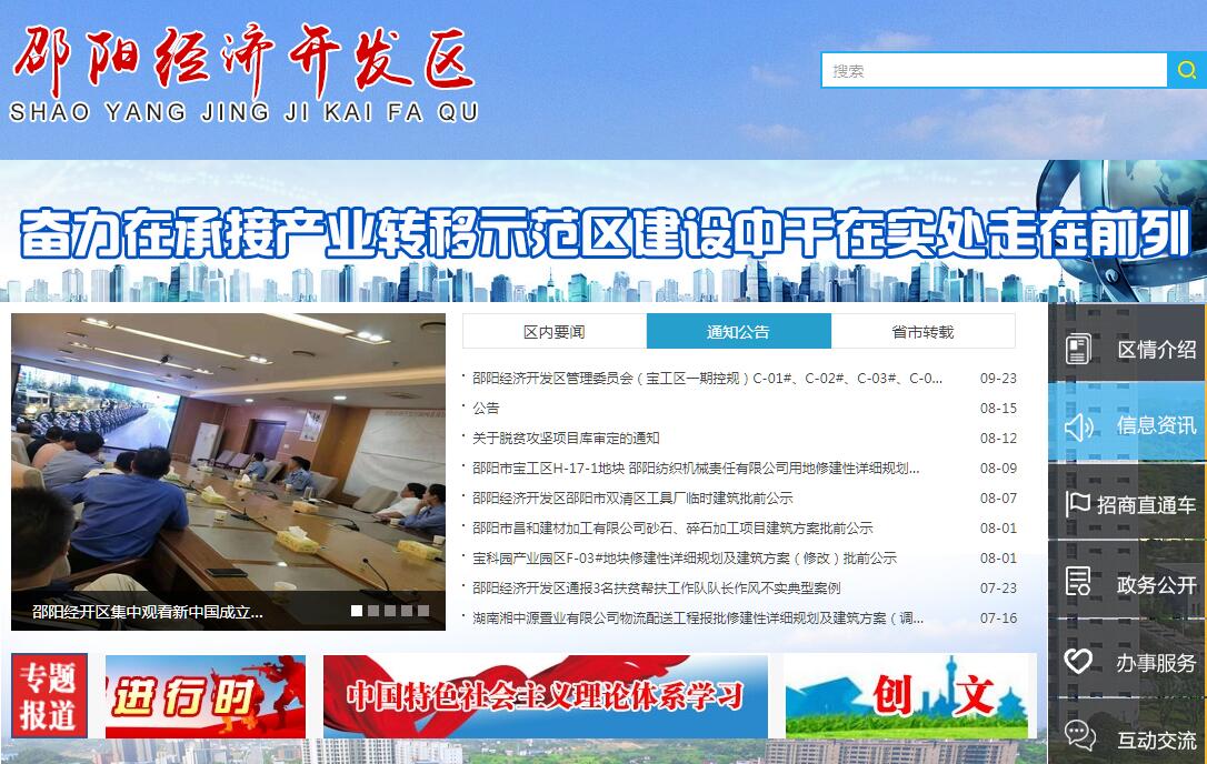 邵阳经开区是邵阳市本级唯一的经开区,2016年11月经省政府同意,整合原湖南邵阳经开区与宝庆工业集中区而成,采取“一区两园”模式管理。其中,江北原邵阳经开区成立于1996年,宝庆工业集中区成立于2006年。经开区先后获得过“民营经济改革试验区”“湖南省信息化和工业化融合试验区”“湖南省新型工业化产业示范基地(工程机械)”“湖南省‘两型’示范创建单位”等多项殊荣。“十三五”期间,邵阳经开区将以创建国家级经开区为总揽,力争建成千亿园区。2016年,邵阳经开区完成技工贸总收入500亿元,完成工业总产值278亿元,完成固定资产投资50亿元,税收20亿元,主要经济指标增幅均进入湖南省第一方阵,全部高于全省平均水平。2017年经开区各项经济指标增速20%以上,经济总量排名全市第一。主要发展特点:地理位置优越。经开区地理区位优势得天独厚,内外交通十分便利。依托邵阳市“全国区域性交通枢纽”综合建设布局,南依沪昆高速和洛湛铁路,北接沪昆高铁、二广高速和邵坪高速,毗邻长沙黄花机场和邵阳武冈机场,形成了1个半小时到长沙,2小时抵武汉,3小时联通广州,4小时通达上海的交通格局。基础日趋完善。经开区一期规划面积16.68平方公里(江北区域6平方公里、双清区域10.68平方公里),二期规划面积18平方公里,远期规划面积达到60平方公里以上。目前“四横五纵”的路网格局基本成型,实现通车总里程60公里以上。水、电、气、污水处理等基础配套已基本完善。已建成标准厂房70万平方米,将累计建完成标准厂房100万平方米。产业集聚发展。重点发展先进装备制造业、农产品加工业、电子信息产业等主导产业,辅以生物医药、发制品、现代物流、汽车商贸等产业。目前,邵阳经开区共引进各类项目260多个。先进装备制造业以三一重工、智能制造工业4.0为龙头,恒天九五邵阳纺机、富士电梯、通达汽零等一批企业入园形成集聚,全力打造“湘中机械制造之都”;传统加工业迅速推进,全球十大制鞋企业之一九兴控股、世界500强台湾统一企业、亚洲最大的羽毛加工企业台湾合隆国际股份有限公司相继落户,引领湘窖酒业、口味王集团、李文食品等农产品品牌快速发展;电子信息产业以分享集团、讯源电子、华锐电子、力科达等一批企业入园形成集聚;生物医药业以湘中制药为骨干,雪峰种业、富民色素、飞力格等企业逐步形成集聚。园区着力发展现代物流、汽车商贸等辅助产业,引进了烟草物流、医药物流等项目和兰天、永通、和信等数十家汽车商贸企业,一座配套齐全的现代物流和汽车商贸城轮廓渐显。发展环境宜商。经开区先后出台了《高新技术企业发展引导基金管理暂行办法》、《邵阳经济开发区贯彻“产业兴邵”战略促进工业招商的优惠奖励办法》等招商引资优惠政策,注重强化要素保障,在规费减免、手续办理、社保、工业发展基金支持奖励等方面给予最优惠的政策,形成“落实政策不打折扣,优惠措施人有我优,重大项目一事一议,优质服务全程代办”的最惠政策体系。目前,园区入驻了工商、环保、国土、安监等16个入驻机构,实行政务中心一站式审批服务,园区事全部实现园区办,先后开通6路交通专线,落实企业高管公租房免费“拎包入住”,员工子女就学就近优先政策,安商营商的氛围不断浓厚。十三五期间,邵阳经开区将紧紧围绕市委“二中心一枢纽”发展战略,以创建国家级经济开发区、打造千亿园区为目标,主动对接“中国制造2025”,加快产业转型升级,出台“最惠”招商政策,实施配套提质,全面增强发展活力,致力将经开区打造成机制创新先行区、新型工业聚集区、开放发展引领区和亲清政商示范区。
