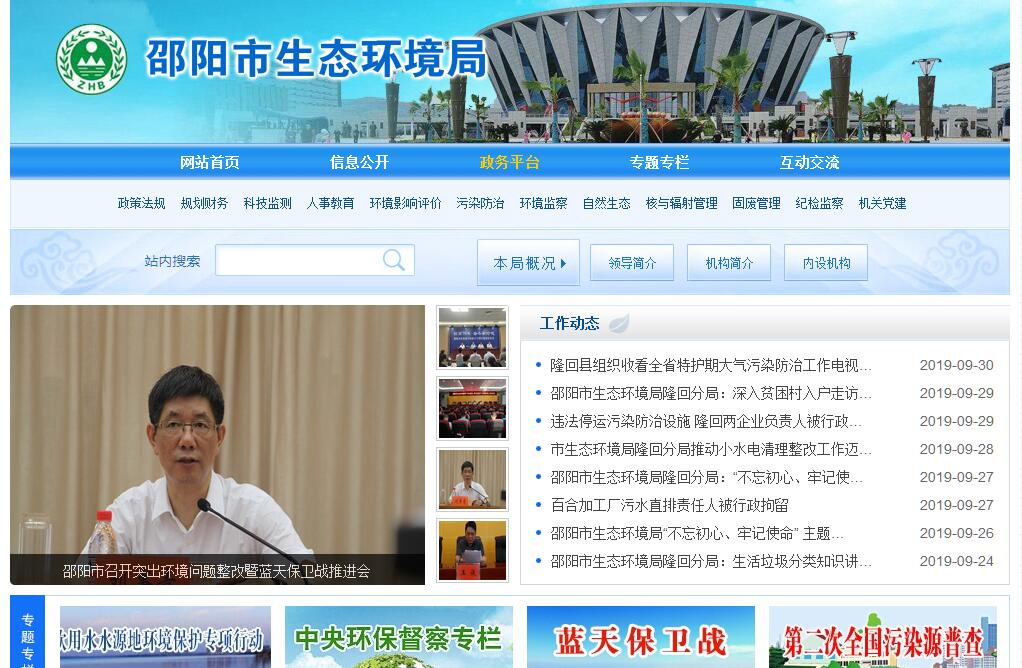 | 网站简介: 邵阳市生态环境局是邵阳市机构改革设置的新部门,为邵阳市人民政府工作部门。 |