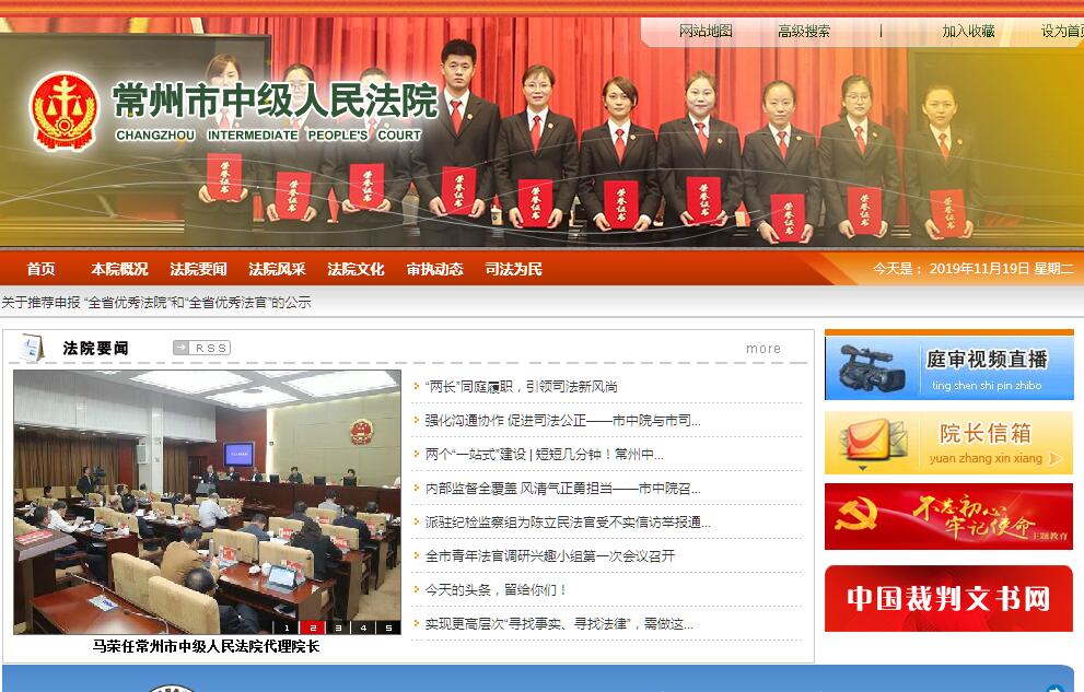 江苏省常州市中级人民法院位于常州市永宁北路6号,下辖武进、天宁、钟楼、戚墅堰、新北5个区法院,金坛、溧阳2个市法院和1个高新区法院。武进区和2个辖市法院还设有8个基层人民法庭。全市两级法院现有各类编制总数为1142人,实有1078人,其中政法专项行政编制894人,实有870人。行政编制干警的学历情况为:具有硕士研究生学历和在读研究生157人,占行政编制总人数的18%;本科学历464人,占53.3%;大专学历185人,占21.2%。常州中院现有编制总数为273人,实有227人,其中政法专项行政编制198人,实有184人。行政编制干警的学历情况为:具有硕士研究生学历和在读研究生34人,占行政编制总人数的18.5%;本科学历112人,占60.8%;大专学历30人,占16.3%。近几年来,常州中院坚持以“三个代表”重要思想和科学发展观为指导,贯彻“公正司法,一心为民”方针,围绕“公正与效率”主题,坚持以争创全国优秀法院为抓手,全面履行审判职能,加强法院队伍建设,大力推进法院改革,为建设“平安常州”、“法治常州”、“和谐常州”,构建和谐社会,服务“两个率先”,实现富民强市,提供了有力的司法保障。2002年至2006年,全市法院受理各类案件152705件,审结152542件,始终保持了收结案的良性循环。常州中院党组一班人团结带领全体法院干警,齐心协力,解放思想,勇于开拓,不断进取,审判工作、队伍建设、法院改革等各项工作均取得了新的进展,受到人民群众和社会各界的广泛好评,也得到上级法院和各级领导的充分肯定。常州中院于2002年、2005年分别被省高院记集体三等功、集体二等功各一次,2006年4月被省高院授予“优秀法院”称号,9月被中共江苏省委、省政府授予“平安江苏建设先进集体”。近年来,先后被最高法院授予全国法院思想宣传工作先进单位、全国法院文化建设先进单位、全国法院行政审判工作先进单位、全国法院行政装备工作先进集体。2007年3月,又被最高法院授予“全国优秀法院”称号。常州中院领导班子从2002-2006年连续五年被中共常州市委评为“团结、廉洁、开拓”好班子。