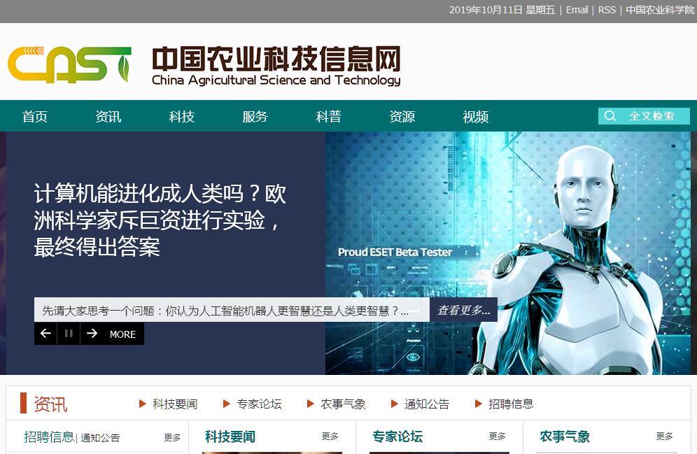 | 网站简介: 中国农业科技信息网由中国农业科学院主办、农业信息研究所承办,1997年正式开通。它是面向农业科研单位、农业高等院校、县级以上农业科技推广部门、农业个体经营单位及广大农业科教人员与农民的综合性农业科技信息网站,内容包括农业科技要闻、农事气象、专家论坛、实用技术、品种推介、科技专题、科技与健康等栏目。 |