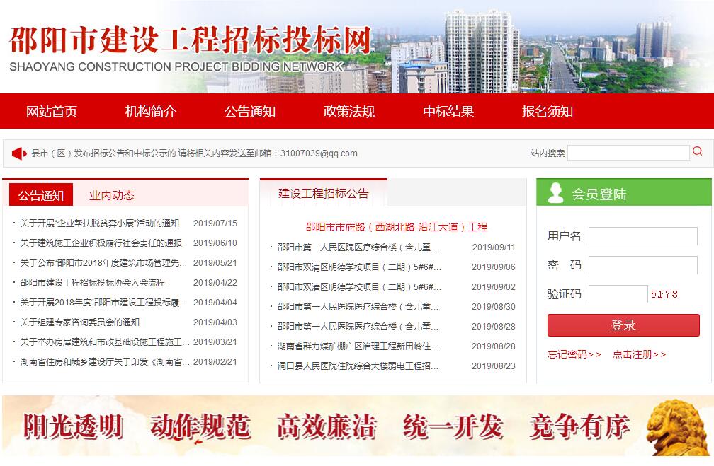 邵阳市建设工程招标投标网由邵阳市建设工程招标投标管理办公室主办。邵阳市建设工程招标投标工作开始于1984年。这年,市政府组织建委等相关单位到广东深圳学习借鉴招投标工作经验后,成立了以市建委副主任刘学玉为组长的市建设工程招投标工作领导小组,由招投标领导小组负责全市的招投标监督管理工作。1986年,地、市建委机构合并,市政府调整了领导小组,市建委副主任杨盛勋任领导小组组长。1992年,经邵阳市编制委员会批复,设置了邵阳市建设工程招标投标管理办公室(邵市编〔1992〕59号),伍翔辉任办公室第一任主任。办公室属独立核算、自负盈亏的正科级事业单位,1993年纳入财政全额预算拔款, 2003年纳入了国家公务员管理范畴,并加挂“邵阳市建设工程稽查特派员办公室”牌子。办公室主要负责宣传贯彻建设工程招标投标法律法规,审查项目发包条件及方式。依法对全市建设工程招标投标活动实施监督管理和指导协调,依法查处违法违规行为,受理招投标投诉,监督招投标各个环节,负责全市招标代理机构管理和评标专家库管理。邵阳市建设工程招标投标由最初的议标、工程任务的平衡分配到邀请招标、公开招标,组织形式更趋完善,评标办法更趋科学。建设了智能化、现代化的建设工程交易中心,加大了设备和软件开发投入。在软件上,先后建立了“邵阳市建设工程招标投标网”、“湖南省房屋建筑及市政基础设施施工及施工监理评标专家库邵阳分库”,成立了“邵阳市建设工程招标投标协会”。完善了招标信息发布系统、评标专家随机抽取系统、计算机辅助评标系统,招标评标公共显示系统,从技术上保障了招标过程的公开和公正。先后制定《建设工程招标申请受理表》、《邵阳市建设工程招标开标、评标纪律》、《邵阳市建设工程评标专家评标声明书》。出台了《邵阳市建设工程招标代理机构管理暂行办法》、《邵阳市建设工程招标投标保证金集中管理制度》等规范性文件。在硬件上,交易中心设置了开标厅、评标厅、监控室和信息显示厅,购置了评委抽取设备,评委接送车辆。安装了电子监控设备和手机信号屏蔽设备,实现了封闭式全监控评标,促进了招标评标有序开展。基本形成业主和施工单位依法招投标、管理部门依法监管、交易中心依法服务、招标代理机构依法代理的监督管理体系。近年来,邵阳市建设工程招标投标管理办公室坚持物质文明、精神文明的协调发展,坚持以文明创建为契机,以提高干部职工素质为重点,以规范招投标市场为着力点。通过全办干部职工共同努力,取得了物质文明和精神文明双丰收。2003年被邵阳市委、市政府表彰为市“文明单位”,并先后获得“全国建筑市场管理先进单位”、 “邵阳市文明单位”等荣誉称号。 2005年度评为邵阳市 “青年文明号”,连续五年被评为“湖南省建设工程招标投标管理先进单位”。2007年度评为湖南省 “青年文明号”。 2009年获“省建筑业管理先进单位”和市“文明标兵单位”。2006-2010年每年都是湖南省招标投标管理先进单位。全市平均每年办结招投标项目近300个,工程总金额近30亿元。市本级平均每年受理项目130个,工程总金额约15亿元,房建总面积达150万平方米。 坚持“公开、公平、公正、诚信”的招投标原则,实现了应招标工程招标率达100%,招投标管理零投诉的良好局面。