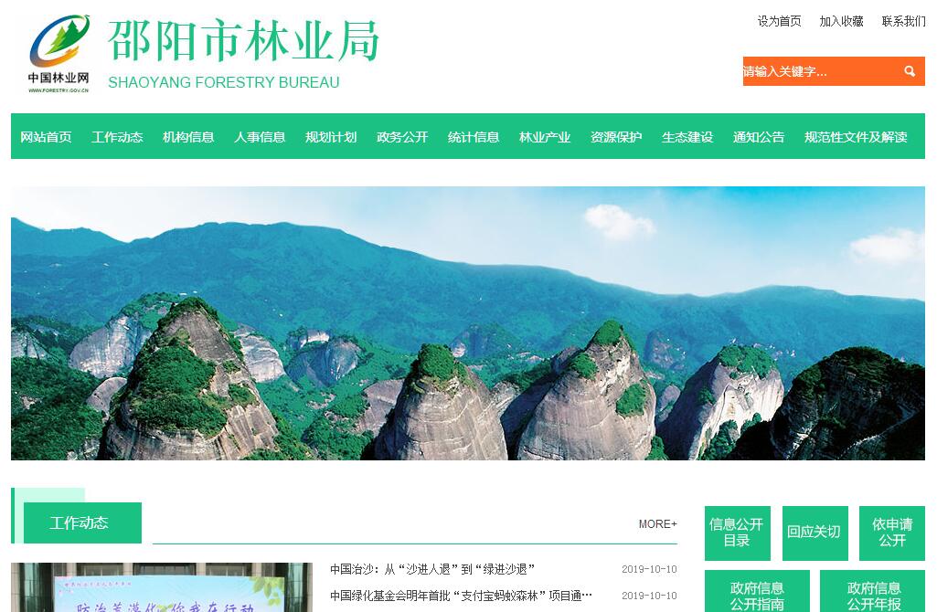邵阳市林业局主要职责:1.贯彻执行党和国家有关林业的法律、法规和方针政策,结合我市实际,提出建议,组织贯彻实施。2.研究拟定我市林业发展和林业生态环境建设法律、法规和条例,报市人大立法后组织实施,并依法监督检查。3.组织编制全市林业发展规划和计划,组织贯彻实施。4.组织指导全市植树造林和造林工程项目的建设管理,检查验收;负责部门造林绿化的组织协调工作。5.组织、指导和监督全市林木凭证采伐,木材凭证运输、经营、加工和林业行政处罚等林政管理;依据《森林法》、《土地管理法》等有关法规,负责林地林木权属管理,申报征用、占用林地并监督林地开发利用;组织指导森林资源的调查、赍错、设计及动态监测、负责森林采伐限管理,实施监督检查。6.负责全市森林经营和国有林场、林业工作站、乡村林场管理。组织贯彻《野生动物保护法》,指导协调森林和野生动物类型自然保护区、森林公园、森林景点古迹的管理、组织指导全县陆生野生动物.植物资源的保护管理和合理开发利用.负责野生动植物进出口申报工作。7.指导、检查、监督和协调森林防火工作。8.负责全市林业公安工作和林业公队伍建设.指导、协调、督促查处破坏森林资源和乱捕滥猎野生动物资源的案件,负责森林刑事案件的侦破。9.负责全市森林病虫害防治检疫和预测预报工作。10.负责全市林木种苗管理工作,指导苗木经营.种子基地建设和质量监督。11.负责全市林业产业的宏观管理,指导、协调、规划林产品市场建设.指导林业基本建设;按行业管理权限,负责全市利用森林资源企业的技改项目的资源论证、审查和产业政策把关,负责全市林业行业企业技改目的的预审、呈报与审批。12.配合有关部门组织指导全市水土保持、农村能源发展、农业综合开发和扶贫等工作。13.负责林业科技管理。组织协调林业科学研究.科技开发和推广工作;负责林业行业的成人教育和林业职工技术教育。14.负责全市林业基金的筹集和管理,监督全市林业基金管理和使用;指导、监督林业系统财务工作,负责全市林业统计工作,系统内的内部审计工作。15.负责林业宣传.外事工作和对外经济合作与交流工作。16.负责局机关自身建设,规范化管理;负责局机关和事业单位的人事.劳动工资管理和处级领导班子建设;负责局机关和事业单位离退休干部的安置和服务工作。17.负责林业行业科技人员的宏观管理,指导林业行业劳动工资管理和安全生产。18.负责局机关和事业单位的纪检监查工作。19.负责机关和林业行业思想政治工作.机关党的建设和统战工作。20.完成市政府交办的其它事项。