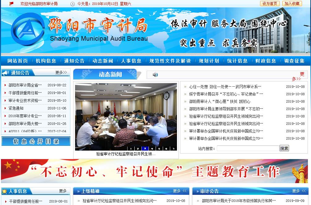 邵阳市审计局成立于1984年1月,是依法独立行使审计监督权的政府重要组成部门。目前,在职总人数60人。局机关内设办公室、政工科(离退休人员管理服务科)、财政审计科、金融外资与社会保障审计科、行政事业审计科、经贸审计科、固定资产投资审计一科、固定资产投资审计二科、农业与资源环保审计科、经济责任审计一科、经济责任审计二科、综合计划科、审计执行科、法规审理科等14个科室。根据《中华人民共和国审计法》和《湖南省审计监督条例》规定,邵阳市审计局履行以下主要职责:(一)主管全市审计工作。负责对全市财政收支和法律法规规定属于审计监督范围的财务收支的真实、合法和效益进行审计监督,维护全市财政经济秩序,提高财政资金使用效益,促进廉政建设,保障全市经济和社会健康发展。(二)贯彻执行国家关于审计工作的方针、政策和法律法规,参与起草全市审计、财政经济及有关规定和规范性文件;制定审计业务相关实施办法和制度并监督执行;制定并组织实施全市审计工作发展规划和专业领域审计工作规划;制定年度审计计划,对直接审计、调查和核查的事项依法进行审计评价,做出审计决定,提出审计建议。(三)向市人民政府、省审计厅报告和向市有关部门通报审计情况,提出制定和完善有关政策法规、宏观调控措施的建议。(四)向市人民政府提出年度市级年度预算执行和其他财政收支情况的审计结果报告。受市人民政府委托向市人大常委会提出市级预算执行情况和县(市、区)财政决算及其他财政收支情况审计工作报告、审计发现问题的纠正和处理结果报告。依法向社会公布审计结果。(五)直接审计下列事项,出具审计报告,在法定职权范围内做出审计决定或向有关主管机关提出处理处罚的建议:1、市本级财政预算执行情况和其他财政收支。2、市辖县(市、区)人民政府预算执行情况和决算情况及其他财政收支。3、市直各部门、事业单位及下属单位的预算执行和决算情况及其他财政财务收支。4、市属地方银行和非银行金融机构的资产、负债和损益。5、市属国有企业、国有控股企业和国有资产占主导地位企业的资产、负债和损益。6、市人民政府投资和以市人民政府投资为主的国家建设项目的预算执行和决算。7、市人民政府部门管理的和其他单位受市人民政府委托管理的社会保障基金、社会捐赠资金以及其他有关基金、资金的财务收支。8、市人民政府接收的国际组织和外国政府的援助、贷款项目以及赠款项目的财务收支。9、法律法规规定应由市审计局进行审计的其他事项。(六)负责市领导干部经济责任审计领导小组办公室日常工作,按规定组织市领导干部经济责任审计处对市管党政领导干部和依法属于市审计局审计监督对象的其他单位主要负责人实施经济责任审计,协调各成员单位运用经济责任审计成果。指导全市经济责任审计工作。(七)组织实施对国家财经法律、法规、规章、政策和宏观调控措施执行情况、财政预算管理或国有资产管理使用等与国家财政收支有关的特定事项进行专项审计或审计调查。(八)负责上级审计机关统一组织或授权的行业审计、专项审计及审计调查项目的组织实施。(九)对审计、专项审计调查和核查社会审计机构相关审计报告的结果承担责任,并督促被审计单位进行整改。依法检查审计决定执行情况,督促纠正和处理审计发现的问题。依法办理被审计单位对审计决定提请的行政复议、行政诉讼或由市人民政府裁决的有关事项。协助配合有关部门查处相关重大案件。(十)指导和监督内部审计工作,核查社会审计机构对依法属于审计监督对象的单位出具的相关审计报告。(十一)与县(市、区)人民政府共同领导县(市、区)审计机关,依法领导和监督下级审计机关的业务,组织下级审计机关实施行业审计、专项审计或审计调查,依法受理被审计单位对下级审计机关审计决定的复议申请,纠正或责成纠正下级审计机关违反国家规定做出的审计决定。按照干部管理权限协同办理县(市、区)审计机关班子成员的任免事项。(十二)指导和推广信息技术在全市审计系统的应用,组织全市审计管理系统和现场审计系统的建设。组织审计业务培训,与有关部门共同组织开展审计领域的对外交流活动。(十三)承办市人民政府交办的其他事项。