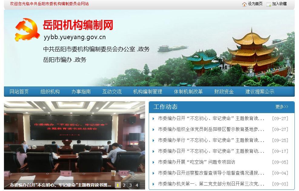 中共岳阳市委机构编制委员会办公室主要职责:一、贯彻执行中央和省有关行政管理体制和机构改革以及机构编制管理的法律法规和政策;起草机构编制管理的规范性文件;统一管理全市各级党政机关(含党委、政府各部门,人大、政协、法院、检察院机关,民主党派、人民团体机关,以及其他行政机构,下同)和事业单位的机构编制工作。二、拟订全市行政管理体制和机构改革总体方案并组织实施;审核市直党政机关各部门和县市区党政机构改革方案;指导、协调全市行政管理体制改革和机构改革工作。三、拟订全市事业单位管理体制与机构改革总体方案并组织实施;审核全市处级以上事业单位和县市区事业单位机构改革方案;审定市直科级事业单位机构改革方案;指导、协调全市各级事业单位机构改革工作。四、审核全市处级机构、县市区党政机关科级机构的设置和调整方案;研究提出市直党政机关职责配置和调整的意见,协调各部门之间、市本级与县市区之间的事权划分和职责分工;审定全市处级机构的内设机构、市直党政机关的科级机构、市直科级事业单位、县市区科级事业单位的设置和调整方案。五、审核市直党政机关各部门、全市处级以上事业单位人员编制方案;审定市直科级事业单位人员编制方案;会同相关部门提出市县党政机关、处级以上事业单位领导职数配备和调整方案;审定市直和县市区党政机关、事业单位科级领导职数;拟订全市各级党政机关行政编制、政法专项编制总额分配和调整方案;拟订全市事业单位机构编制标准和管理办法。六、拟订全市乡镇机构改革总体方案并指导实施;管理全市乡镇人员编制总量。七、负责全市各级党政机关、事业单位机构编制实名制管理;审核纳入市级财政统一发放工资的同级党政机关、事业单位(含收取规费的事业单位)的人员编制性质、数量、实有人数和领导职数;负责全市机构编制统计工作。八、贯彻执行国家有关事业单位登记管理的法律、法规、规章,拟订全市事业单位登记管理的相关文件并组织实施;依法对市直事业单位进行登记管理,积极开展事业单位法人履职评估工作,会同有关部门认真做好事业单位法定代表人离任审计工作;指导、协调、监督全市事业单位登记管理工作。九、监督检查全市各级党政机关、事业单位机构编制及机构改革方案的执行情况,会同有关部门查处机构编制违规违纪行为。十、负责指导全市政务类和公益类网上中文域名管理的工作。十一、承办市委、市人民政府和市委机构编制委员会交办的其他事项。