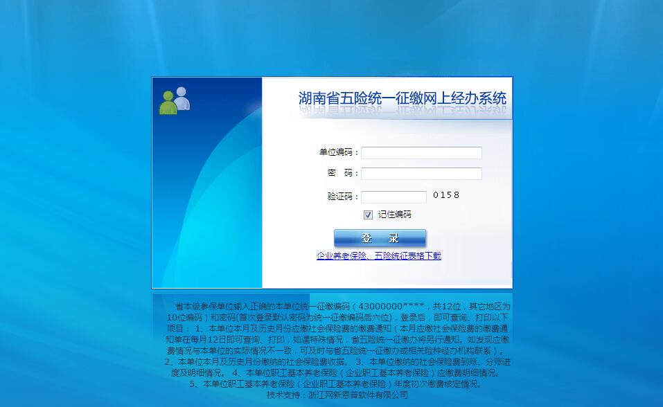 | 网站名称: | 湖南省五险统一征缴网上经办系统 | ||