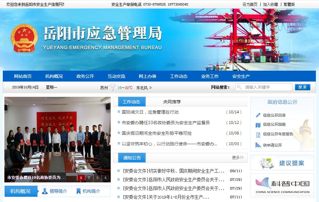 岳阳市应急管理局贯彻落实党中央关于应急工作的方针政策和决策部署,全面落实省委、市委关于应急工作的部署要求,在履行职责过程中坚持和加强党对应急工作的集中统一领导。其主要职责是:(一)负责应急管理工作,指导全市各地区各部门应对安全生产类、自然灾害类等突发事件和综合防灾减灾救灾工作。负责安全生产综合监督管理和工矿商贸行业安全生产监督管理工作。(二)贯彻实施相关法律法规、部门规章、规程和标准,组织编制全市应急体系建设、安全生产和综合防灾减灾规划,组织起草相关地方性法规、规章草案,组织拟订相关政策、规程和标准并监督实施。(三)指导应急预案体系建设,建立完善事故灾难和自然灾害分级应对制度,组织编制岳阳市总体应急预案和安全生产类、自然灾害类专项预案,综合协调应急预案衔接工作,组织开展预案演练,推动应急避难设施建设。(四)牵头推进全市统一的应急管理信息系统建设,负责信息传输渠道的规划和布局,建立监测预警和灾情报告制度,健全自然灾害信息资源获取和共享机制,依法统一发布灾情。(五)组织指导协调安全生产类、自然灾害类等突发事件应急救援,承担市应对较大及以上灾害指挥部工作,综合研判突发事件发展态势并提出应对建议,协助市委、市政府指定的负责同志组织较大及以上灾害应急处置工作。(六)统一协调指挥各类应急专业队伍,建立应急协调联动机制,推进指挥平台对接,负责做好解放军和武警部队参与应急救援相关衔接工作。(七)统筹全市应急救援力量建设,负责消防、森林火灾扑救、抗洪抢险、地震和地质灾害救援、生产安全事故救援等专业应急救援力量建设,指导地方及社会应急救援力量建设。(八)负责全市消防管理有关工作,指导地方消防监督、火灾预防、火灾扑救等工作。(九)指导协调全市森林火灾、水旱灾害、地震和地质灾害等防治工作,负责自然灾害综合监测预警工作,指导开展自然灾害综合风险评估工作。(十)组织协调灾害救助工作,组织指导灾情核查、损失评估、救灾捐赠工作,按权限管理、分配中央、省下达和市级救灾款物并监督使用。(十一)承担市安全生产委员会日常工作,依法行使安全生产综合监督管理职权,指导协调、监督检查市政府有关部门和各县市区政府(管委会)安全生产工作,组织开展安全生产巡查、考核工作。(十二)按照分级、属地原则,依法监督检查工矿商贸生产经营单位贯彻执行安全生产法律法规情况及其安全生产条件和有关设备(特种设备除外)、材料、劳动防护用品的安全生产管理工作。负责监督管理工矿商贸行业市属企业安全生产工作。依法组织和指导监督实施安全生产准入制度。负责危险化学品安全监督管理综合工作和烟花爆竹安全生产监督管理工作。(十三)依法组织指导生产安全事故调查处理,监督事故查处和责任追究落实情况。组织开展自然灾害类突发事件的调查评估工作。(十四)开展应急管理对外交流与合作,组织参与安全生产类、自然灾害类等突发事件的对外救援工作。(十五)制定全市应急物资储备和应急救援装备规划并组织实施,会同市商务粮食局建立健全应急物资信息平台和调拨制度,在救灾时统一调度。(十六)负责应急管理、安全生产宣传教育和培训工作,组织指导应急管理、安全生产的科学技术研究、推广应用和信息化建设工作。(十七)承担市防汛抗旱指挥部日常工作,协调市防汛抗旱指挥部成员单位的相关工作,组织执行国家防汛抗旱总指挥部、相关流域防汛抗旱指挥机构和省、市防汛抗旱指挥部的指示、命令。(十八)完成市委、市政府交办的其他事项。