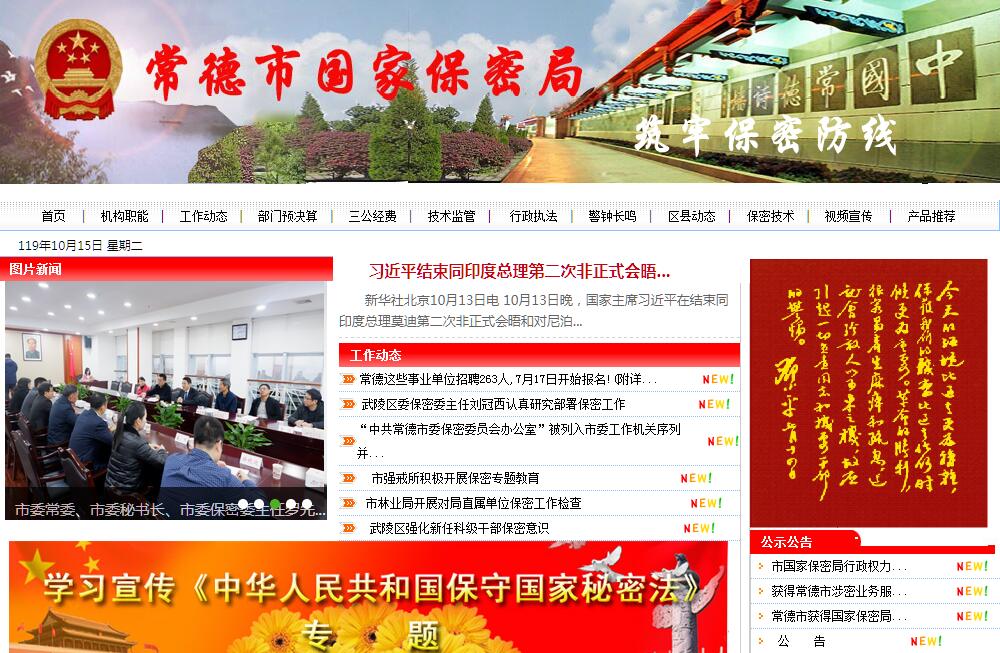 | 网站简介: 中共常德市委保密委员会办公室(常德市国家保密局)主要职责是:负责全市保密工作的规划、宣传教育、指导协调、监督管理和失泄密案件查处工作;负责涉密通信、办公自动化和计算机信息系统的技术防范和审批管理。 |