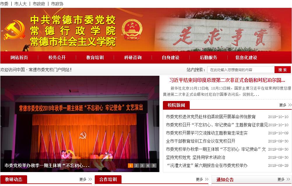 中共常德市委党校(常德行政学院、常德市社会主义学院)是市委的重要部门,是市委、市政府直接领导下培养党员领导干部和理论干部的学校,是党的哲学社会科学研究机构。学校位于常德市郊风景秀美的河洑国家森林公园内,校园占地面积100亩,有教学楼1栋、科研综合楼1栋、学员宿舍13栋,报告厅、图书馆、餐厅等学习生活设施齐全,可同时容纳在校学员300多人。学校建有高标准灯光塑胶篮排球场、乒乓球室和室外拓展活动设施。2005年3月,经省委、省政府批准,学校升格为大专体制,机构级别为副厅级。学校为“一校两院”(党校、行政学院、社会主义学院)办学格局,市委副书记兼任校(院)长。学校领导机构为校务委员会,下设办公室、人事处、教务处、后勤处、科研处、对外合作培训处、学员管理中心等7个行政处室和马克思主义教研室、党史党建教研室、法学教研室、管理教研室、经济学教研室、科技教研室、图书馆等7个教学教辅处室。现有教授2人,副教授10人,中级以上职称26人,研究生以上学历28人。学校建有高标准情景模拟教室、媒体压力实训室,建有宽带信息网络系统和中央党校远程教学系统,为师生提供各种信息和多媒体教学体验。一直以来,学校认真落实中央“大规模培训干部、大幅度提高干部素质”和“全面深化干部教育培训改革、全面提升干部教育培训质量”的有关精神,始终围绕市委、市政府的工作大局,坚持以教学、科研、咨询为中心,全面推进从严治校,切实做好干部教育培训工作,每年培训党员领导干部、宣传理论干部、民主党派和党外代表人士、企业经营管理人才、专业技术人才6000人次左右,为我市科学发展和干部成长作出了应有贡献。