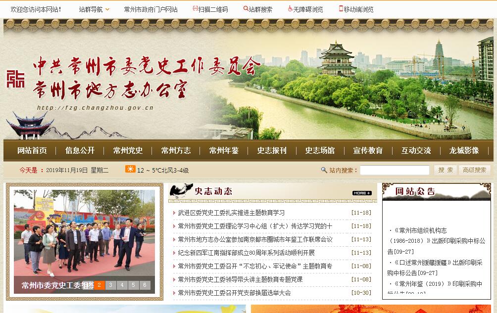 | 网站简介: 市委党史工作委员会主要职责是:主管、规划、组织、协调全市党史工作;征集、整理党史资料;进行党史研究,编写地方党史,编辑出版重要党史书刊;组织党史理论和重要党史专题的研究;运用党史资料和研究成果,采取多种形式,对干部群众特别是青少年进行政治思想宣传教育;参与组织全市重大党史纪念活动;承担市委下达的有关任务,完成上级党史部门交办的事项;指导辖市区及各部门、各单位的党史业务工作;评定党史部门科研成果;指导市中共党史学会工作。市地方志办公室主要职责是:负责全市地方志和年鉴工作的规划、组织、协调;续修《常州市志》;逐年编纂出版《常州年鉴》;征集、整理、研究各类地情资料,征编常州地情资料丛书;编辑出版方志刊物;组织开展地方志、年鉴的学术理论研究;系统收集、整理常州旧志;充分利用地情资料,采取多种形式为现实服务;承担市委、市政府下达的有关任务,完成上级地方志部门交办的事项;指导辖市区及各部门、各单位的地方志、年鉴业务工作;评定地方志部门科研成果;指导市地方志年鉴学会的工作。 |