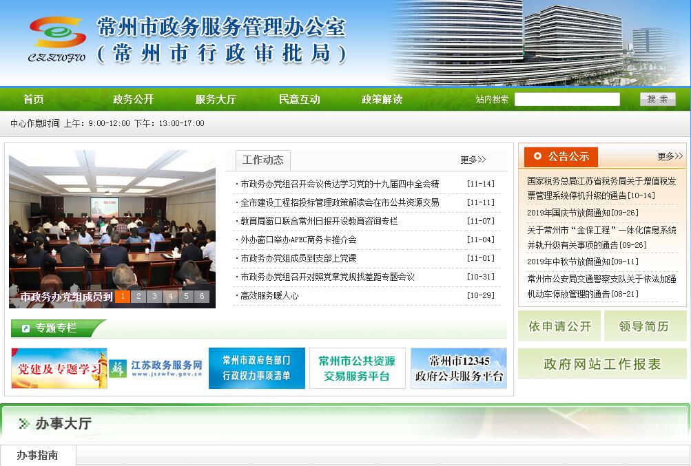 常州市政务服务管理办公室是市政府工作部门,为正处级,挂市行政审批局牌子。常州市政务服务管理办公室负责贯彻落实中央关于政务服务管理工作的方针政策和省委、市委的决策部署,在履行职责过程中坚持和加强党对政务服务工作的集中统一领导。其主要职责是:(一)负责全市政务服务综合管理、业务指导。负责市、辖市(区)两级高频政务公共服务事项清单动态管理。(二)负责全市“放管服”改革工作的统筹协调和组织实施。(三)组织市级政务服务事项集中受理办理。负责对进驻市级政务服务大厅的窗口、事项、人员的管理、监督和考核,组织对全市政务服务大厅的监督考核。(四)负责全市代办服务体系的建立和业务指导,协调全市重点建设项目审批服务。(五)负责拟订和组织实施全市政务服务信息化建设发展规划、年度工作计划及实施方案。(六)负责全市一体化在线政务服务平台的规划建设、推广应用、运行管理、监督考核,开展全市政务服务一体化平台的数据归集、应用和分析。承担公共资源交易电子化实施和安全管理工作。(七)负责全市公共资源交易管理监督工作。(八)负责政务服务热线的业务指导、组织协调、数据分析和考核评价工作。负责“市政风热线”运行管理工作。(九)完成市委、市政府交办的其他任务。