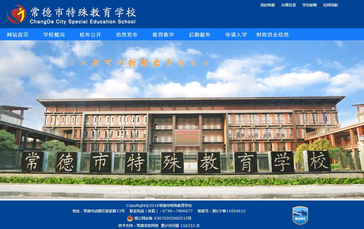 常德市特殊教育学校校园建设工程是常德市市委、市政府落实省为民办实事的一项重要工程之一常德市特殊教育学校是由常德市人民政府主办、市教育局主管的全额拨款事业单位,坐落在常德市城区。学校于2008年底开始新建,总投资1.5亿元,净用地85亩,建筑面积31027平方米。学校办学条件处于全国领先水平:每间教室都配有目前国内最先进的交互式电子白板和多媒体讲台;聋生、智障生科训楼设有独立的综合训练室、情景教室、电教室、测听室、感统室、律动室、康复室等;拥有标准的运动场和功能齐全的体艺楼,体艺楼既可以承办各种体育赛事,又可以举办各型文艺汇演;学生宿舍公寓式修建:配有独立的卫生间、盥洗池、空调、衣柜、直饮水和空气能热水器,寄宿生有专门生活教师护理。学校自2011年开始招生办学,目前在校学生160余人,教职工60人,其中专业教师54人,均从特殊教育专业毕业,在读研究生3人。学校主要从事听力残障、智力残障少年儿童义务教育与康复训练及听力残障少年高中阶段教育。此外,学校还将成为全市特教师资培训中心、市残疾人艺术表演中心、听障儿童语言训练中心、智障儿童康复中心和省残联拟定的聋儿语训康复中心。学校秉承自理、自立、自强的办学理念,培养学生照顾自己、养活自己、超越自己的能力。采取自主化管理模式,使学校发展目标和教师自身价值实现高度融合,增强教师的凝聚力和归属感。自办学初便提出“益智教育生活化和启聪教育普校化”的育人理念。对于培智学生的教育,以养成教育为突破口,夯实教育生活化基础,扩宽教育生活化领域,把训练内容与现实生活相联系,训练形式与生活实践相结合,使学生在生活中掌握技能、学会沟通、适应社会;对于听障学生的教育,以普校模式开展教育教学,力求在课程设计、教材选取、目标培养、班级管理等方面都参照普校模式,缩小与普校的差距,寻找融合点,让听障学生顺利升学、融入社会。在师资培养方面,学校积极为教师的专业成长搭建科学平台,先后邀请华东师大黄昭明博士、北师大肖非教授、重师大张文京教授等特教知名专家进校指导办学,千方百计为教师外出学习创造机会,先后带领老师到周边普小、幼儿园、特教学校体验学习,赴深圳元平、上海浦东、哈尔滨燎原等特校参观学习,不断提高新教师的业务水平。自建校以来,各级领导十分关心学校的建设和发展,湖南省教育厅原厅长张放平、常德市现任市委书记王群,前任市委书记卿渐伟、市长陈文浩等领导先后到学校视察指导。自办学以来,近2000来宾接踵至校,参观指导,对我校给予高度评价。2012年学校被评为“湖南省三八红旗集体”,被市教育局评为“年度目标考核先进单位”和“教育系统计生综治工作先进单位”,教师多篇论文获省级奖励,其中一等奖4名,师生多幅书法、绘画作品获市级奖励,其中一等奖1名。学校发展规划为:2015年在校生规模达300人,办成湖南省特殊教育示范学校,2018年在校生规模达500人,办成全国一流的特殊教育学校。