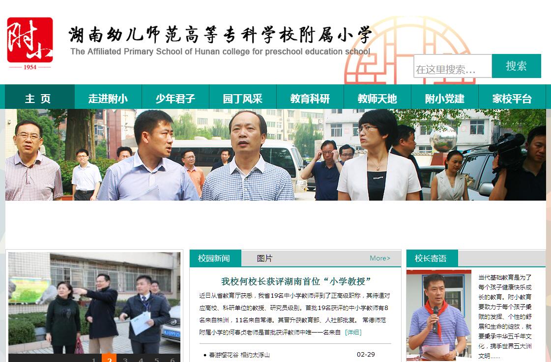 常德师范附属小学是常德市教育局直管小学。创办于1954年,占地面积24亩,现有教职工64名,在校学生1350名。建校53年来,学校以现代教育理念为先导,以高素质的教师队伍为保证,以高质量的人才培养为目标,坚持不懈抓管理,精益求精建队伍,持之以恒创特色。学校先后被授予“全国红旗大队”、“湖南省现代教育技术实验学校”、“湖南省园林式单位”、“湖南省文明卫生单位”,常德市“明星学校”、“名优学校”、“特色学校”、“绿色学校”、“德育工作先进单位”等30多个集体荣誉称号。学校师资力量雄厚。现有特级教师5名,中学高级教师3名,国家级骨干教师3名,省、市优秀教师8名,市级学科带头人5名。在职教师学历合格率达100%,研究生毕业或结业的8名,其中3名荣调大学或中等专业学校,34人具有本科学历。学校办学条件优良。近十年累计投入建设资金1350万元,扩大校园面积,新修改建科教楼、运动场、教学楼等。投入220万元推进教育信息化工作,建成了高标准校园网和教师电子备课室,实现了班班通。电脑教室、多功能教室、实验室、科学探究室、多媒体音乐教室和美术教室、视频会议室等专用功能教室一应俱全。学校教研成果突出。近五年来,获市级以上赛课一等奖的32人次,省级一等奖17人次,国家级一等奖6人次。《立足课堂,创新课改》等12项课题获国家级或省级奖励,18位教师参与了省、市地方教材和有关教学工具书的编写,12位教师在各级报刊上发表论文百余篇,45位教师300多篇论文在各级评比中获奖。研究性学习成果《擂茶文化探讨》、《小学生自护能力的调查研究》、《小商标大世界》获全省、全国一等奖。学生自编的《小学生自我教育三字经》等德育研究成果获领导专家好评。学校教学质量优秀。学生带愉悦之情求知,怀敬畏之心向善。“合格+特长”的教育目标得以充分体现。各类艺术小星在市、省、全国大赛中崭露头角。养和谐之气固本,蓄创新之势超凡,诚欣赏之意评学,坚精进之志向教。附小人将秉承这一宗旨,风正悬帆,锐意进取!