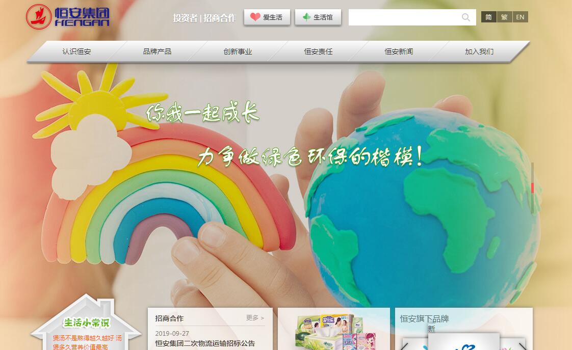 福建恒安集团有限公司创立于1985年,是生活用纸和妇幼卫生用品制造商,拥有固定资产380亿元。恒安国际于1998年12月8日在香港联交所上市。2011年6月7日,恒安国际入编香港恒生指数成分股。上市20周年以来,企业保持持续健康发展,恒安拥有安尔乐、心相印、安儿乐等三枚中国驰名商标,妇女卫生巾、婴儿纸尿裤、生活用纸三大主导产品市场占有率在国内市场前列。2017年,恒安完成销售收入198亿元,实现利润38亿元。2018年上半年,公司业绩达101亿元,同比增长16.3%。恒安坚持持续创新。2002年以来,先后引进世界著名管理咨询公司美国汤姆斯集团、美国博斯公司和IBM公司,先后三次推行企业全面管理变革,全方位提升企业核心竞争力。同时全面导入卓越绩效管理体系。2013年底,恒安开启以信息化、平台化为基础的第三轮管理变革,打造信息化可视化运营平台,推行平台化小团队经营,实现企业战略转型,巩固和提升核心竞争力。近年来,恒安引进世界先进生产设备,同步推进福建晋江、湖南常德、山东潍坊、重庆、安徽芜湖及新疆昌吉等六大生活用纸原纸造纸基地的产能扩张,生活用纸产能规模在行业前列。受益于国家“一带一路”战略实施,恒安集团也加快步伐走出去,先后在马来西亚收购上市公司,在印尼、俄罗斯等国投资建厂,并在芬兰投资生物制浆项目,进一步延伸产业链和布局国际市场。2016年,因在低碳、绿色、可持续发展方面的优异表现,恒安集团被世界环保大会授予“国际碳金总奖”,CEO许连捷先生被授予“碳金变革领导者奖”;2016、2017年,许连捷先生连续两年荣登哈佛商业评论“中国百佳CEO”榜单。恒安实现企业发展的同时,注重承担社会责任,仅上市20年以来,企业累计纳税超280亿元。企业发展33年以来,恒安及其主要股东累计捐款超13亿元。恒安坚持“诚信、拼搏、创新、奉献”的精神,以“追求健康,你我一起成长”为使命,目标是通过持续的创新与优质产品服务,成为国际顶级生活用品企业。