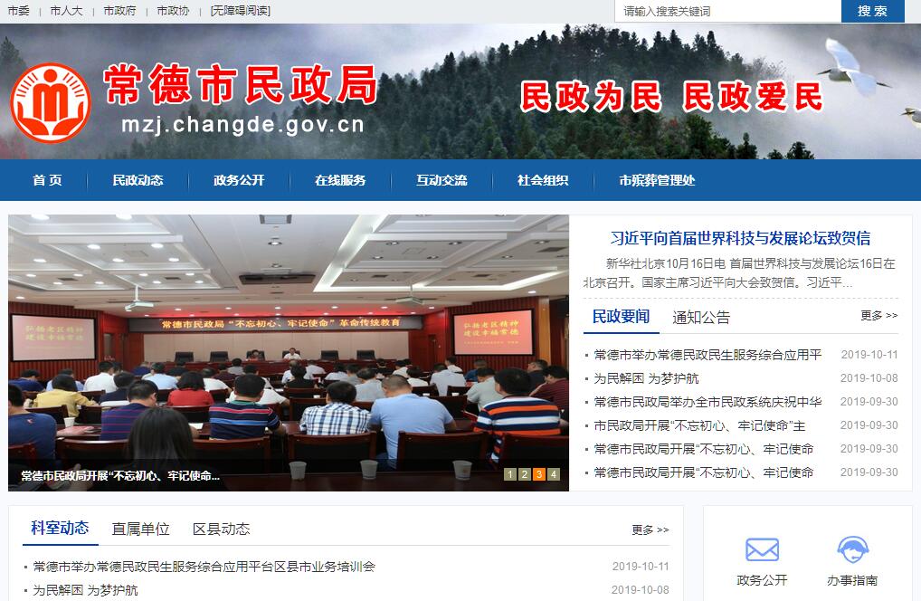 常德市民政局主要职责:(一)贯彻执行国家和省关于民政工作的法律、法规和方针、政策;拟订全市民政工作相关办法和全市民政事业发展规划,并组织实施和监督检查。(二)依法对全市社会团体、基金会、民办非企业单位进行业务指导、登记管理和监察执法。指导全市社会组织党建工作,承担市社会组织党工委的日常工作。(三)负责各类优抚对象的抚恤、优待、补助工作,承办烈士褒扬的审核、呈报工作,承办国家公务员、人民警察、参照公务员法管理的国家机关工作人员及退伍军人等有关人员伤残评定的审核呈报和伤残(亡)抚恤工作;组织和指导拥军优属、拥政爱民工作,指导优抚事业单位的管理;负责全市革命老区扶贫、开发工作。(四)组织、协调退役士兵和移交地方安置的军队离休干部、退休士官、军队无军籍退休(退职)职工的接收安置工作;负责成批过境部队、入伍新兵、退伍老兵、支前民兵民工等运输途中的饮食供应保障工作;指导、协调全市军地两用人才的开发使用;指导全市军队离退休干部休养所的建设与服务管理,落实军队离退休干部的有关政治、生活待遇。(五)组织、协调救灾减灾工作;组织自然灾害救助应急体系建设;组织核查、统计上报并统一发布灾情;筹措、管理、分配救灾款物并监督使用;组织、指导救灾捐赠工作;组织救灾物资的储备和发放工作。(六)组织拟订全市社会救助规划、办法和标准,负责社会救助体系建设;指导、协调全市城乡居民最低生活保障、医疗救助、临时救助、农村五保供养和敬老院管理工作;负责社会救助方面专项资金的分配、管理和监督;指导区县市城乡社会救助工作。(七)指导城市生活无着人员救助管理工作;指导全市救助管理站建设工作;协调跨市及跨区县市生活无着人员救助管理工作。(八)指导、协调城乡社区建设、管理和服务工作;推动基层民主政治建设和村(居)务公开;指导基层群众自治组织和社区组织的工作人员表彰工作。(九)拟订全市行政区划总体规划,负责区县市、乡镇的设立、撤销、调整、更名和行政区域界线变更的审核、报批工作;承办与相邻市州边界的勘界和界线争议的调处工作;指导、协调区县市行政区划工作和界线争议的调处工作。负责地名管理工作。(十)拟订全市社会福利事业发展规划、办法并组织实施,指导社会福利机构的建设、管理和老年人、孤儿、残疾人等特殊群体的权益保障工作;拟订全市社会福利企业的抚持办法,负责市本级社会福利企业的审核,指导全市社会福利企业管理工作;组织拟订促进慈善事业发展的规划和办法;指导、协调社会捐助工作;指导、协调福利彩票销售,管理市本级福利彩票公益金,指导、监督区县市福利彩票公益金的使用。(十一)贯彻执行国家的婚姻登记、殡葬管理和儿童收养法律、法规和政策并组织实施,推进婚俗和殡葬改革;指导婚姻、殡葬、收养服务机构管理工作;承办涉港澳婚姻登记工作和涉港澳台、华侨的收养登记与解除收养关系登记工作。(十二)会同有关部门拟订全市社会工作发展规划,推进社会工作人才队伍建设;指导全市基层民政干部职工队伍建设;推进民政科技和民政行业标准化工作。(十三)负责民政事业经费的内部审计和监督;负责民政统计工作。(十四)协调老龄工作法律法规和方针政策的贯彻执行,拟订全市老龄工作相关办法,编制全市老龄事业发展规划并组织实施和监督检查。(十五)承办市委、市人民政府交办的其他事项。
