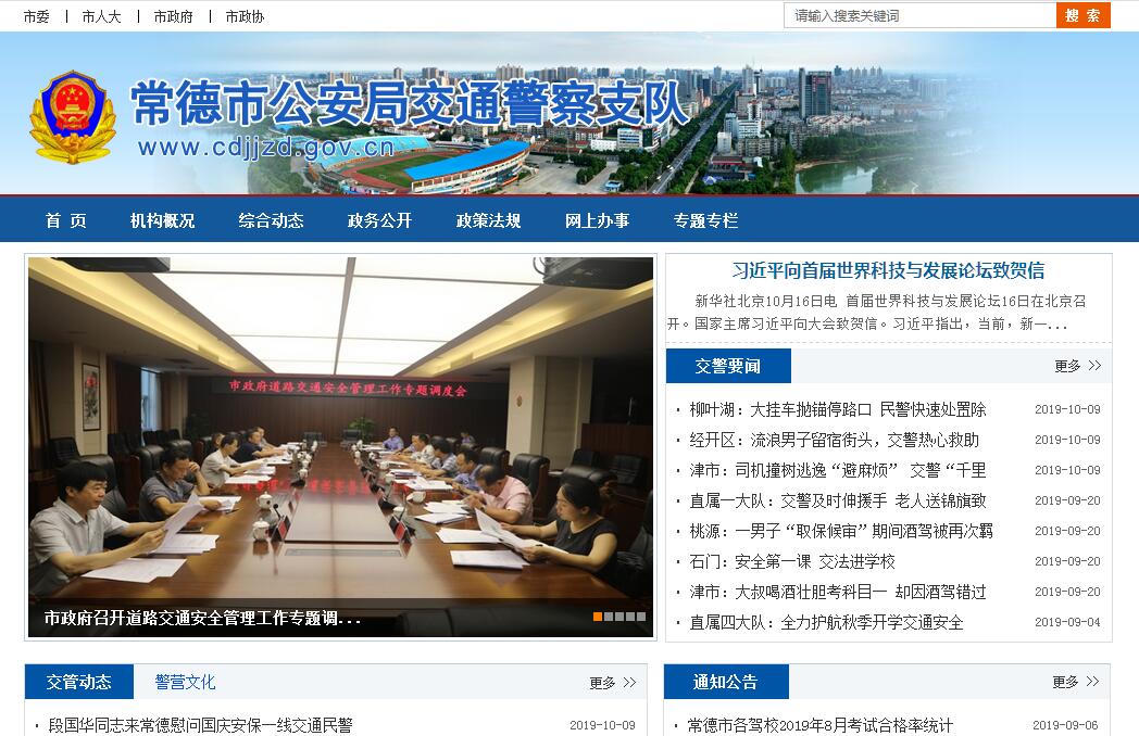 常德市公安局交通警察支队主要职责:(一)贯彻执行国家、省有关道路交通安全、交通秩序的法律、法规和规章;研究制定辖区道路交通管理对策,拟定全市道路交通安全、秩序管理发展战略。(二)指导和参与处理各类道路交通违章,指挥疏导交通,维护公路、城市道路(包括人行道、非机动车道和机动车道)交通秩序;参与研究城市建设、道路交通和安全设施的规划;负责城区道路交通标志、标线、交通信号装置等安全设施的设置和管理,依法打击破坏道路交通安全设施等违法犯罪活动。(三)参与全市道路检查站(卡)的审核和管理工作;参与对停车场(库)、车辆停靠站点的规划建设和挖掘、占用道路的审批管理工作;负责城区停车场(不含交通部门主管的道路客货运输站场)的使用管理,并参与停车场规划、设计、建设的审查监督工作;参与管理城市出租车辆,负责城区客运车辆使用号牌和线路牌的管理,牵头搞好城区客运交通的科学组织,查处无使用号牌和不按规定线路行驶营运以及不按规定站点停靠等违章行为。(四)指导全市道路交通事故的预防和调处工作,参与查处特大交通事故;指导全市机动车驾驶员协会工作和开展交通安全宣传教育活动。五)负责实施交通警(保)卫工作和公路上的综合执法,参与处置突发事件,维护公路治安秩序,预防和制止公路上发生的违法活动,打击车匪路霸,堵截逃犯及其他犯罪嫌疑人,依法查处乱设卡、乱罚款、乱收费行为。(六)贯彻执行国家有关机动车管理的各种法律、法规及政策;依法对全市的机动车进行登记管理(注册、过户、转入转出、变更、抵押、停驶复驶、临时入境、注销登记等);负责对全市新上户及外地转入的机动车与全国机动车盗抢数据库、进口机动车数据库进行检索、查询;承担全市机动车的安全技术性能检验;负责全市机动车安全技术检测站的管理;负责全市特种车辆安装警灯、警报器和使用证的呈报、审批与核发工作;对全市机动车生产、改装、维修、报废进行安全技术监督;负责全市机动车档案管理;依法对委托农机部门管理的拖拉机及其驾驶员进行监督管理。(七)依法受理初次报考机动车驾驶员的资格审验、考试、发证;负责对在册驾驶员进行日常管理(年审、安全教育、增驾、复验、转籍异动、换补、违章记分、驾驶证的吊扣、吊销、注销和撤销等);负责教练车牌证、教练员证和教练车路线区域通行证的核发管理.参与对机动车驾驶员学校的监管;负责对全市机动车和驾驶员的各类资料归口管理,建档保管和数据的登记、统计以及分类上报工作。(八)按有关规定负责对省财政划拨的养路费提成的交通管理经费的核处和管理;组织对全市公安交通系统预算外收入和罚没款、物的稽查和审核;负责落实对公安交警系统预算外资金收、支和其他经费的收、支管理;负责支队机关和所属单位国有资产的监督管理。(九)担负湖南省机动车驾驶员考试中心常德考场的后勤保障及考场配套设备、设施的管理和考场后期建设及开发工作。(十)组织指导全市公安交警队伍的纪律作风建设、宣传教育、思想政治工作和业务培训;指导、检查和监督公安交通管理部门的执法活动,督查和协助查处违法违纪案件;协助县(区、市)公安局党委管理交警大队的领导班子。(十一)负责全市公安交通管理部门的交通管理科学技术的研究、规划和组织推广、应用,以及通信、计算机应用的规划指导。(十二)承办市委、市人民政府和市公安局交办的其他事项。