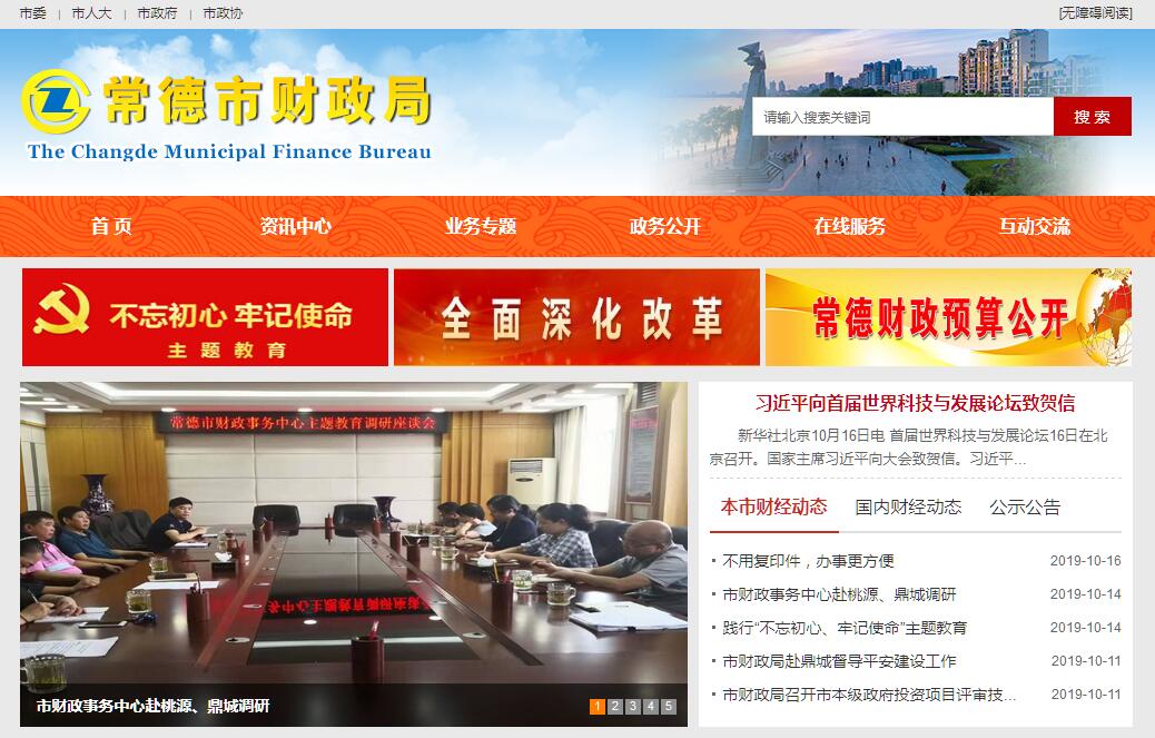 常德市财政局为常德市人民政府工作部门之一,坐落在常德市武陵区北正街。近年来,在市委、市政府的坚强领导和上级主管部门的精心指导下,在市人大、市政协以及各部门的监督支持下,局党组一班人带领全局干部职工内强素质,外树形象,锐意改革,扎实工作,财政改革发展取得新成绩,机关建设收获新成果。2016年全市一般公共预算收入、地方财政收入分别完成226.56亿元、157.18亿元,其中市本级分别完成102.40亿元、74.41亿元;紧紧围绕全市发展大局,积极优化支出结构,努力筹措调度资金,确保了各项重点支出保障到位,有力助推了新常德新创业,促进了全市经济社会平稳健康发展。近年来,我局先后被评为全国文明单位、全国法制宣传教育先进集体、湖南省人民满意公务员集体、常德市十佳人民满意标兵单位、全市绩效评估优秀单位等。其主要职责是:(一)组织贯彻执行国家和省财税方针政策,拟订和执行全市财政政策、改革方案,指导全市财政工作;分析预测宏观经济形势,参与制定各项宏观经济政策;提出运用财税政策实施宏观调控和综合平衡社会财力的建议;拟订和执行市、区政府间以及政府与企业间的分配政策,完善鼓励公益事业发展的财税政策。(二)承担市本级各项财政收支管理的责任。负责编制市本级年度财政预算草案并组织执行;汇总全市财政总决算与部门决算;受市人民政府委托,向市人民代表大会报告全市和市本级预算及其执行情况,向市人大常委会报告决算;组织制定市本级经费开支标准、定额,负责审核批复部门(单位)的年度预决算;完善转移支付制度,落实省直管县财政体制改革。(三)负责政府非税收入管理;负责政府性基金管理,按规定管理行政事业性收费;管理财政票据;负责拟订政府采购制度,并组织实施;负责控制社会集团购买力工作,并负责其财务监管工作。(四)组织制定国库管理制度、国库集中支付制度,指导和监督市本级国库业务,按规定开展国库现金管理工作;负责市本级财政银行账户、预算单位银行账户管理监督工作。(五)负责制定全市行政事业单位国有资产管理制度,按规定管理行政事业单位和规定范围内的其他国有资产;负责财政预算内行政、事业单位和社会团体的非贸易外汇管理。(六)负责审核和汇总编制国有资本经营预决算草案,制定国有资本经营预算的制度和办法,指导市本级企业国有资本收益的收取,组织实施企业财务制度,参与拟订企业国有资产管理相关制度,按规定管理资产评估工作。(七)负责办理和监督市财政的经济发展支出、市级政府性投资项目的财政拨款;参与拟订城市基础设施建设投资的有关政策;组织实施基本建设财务制度,负责政府投资项目评审管理;负责有关政策性补贴和专项储备资金财政管理工作;负责农业综合开发管理工作。(八)负责指导全市乡镇财政财务管理工作,指导乡村消赤减债和全市涉农补贴发放工作,承担减轻农民负担和农村综合改革有关工作。(九)会同有关部门监督管理市社会保障资金(基金),组织实施社会保障资金(基金)财务管理制度,编报市社会保障资金(基金)预决算草案。(十)贯彻执行政府债务管理的政策、制度和办法;指导和协调全市政府性融资工作;按规定管理外国政府和国际金融组织贷(赠)款;承担财税领域交流与合作的具体工作。(十一)负责管理全市会计工作,监督和规范会计行为,组织实施国家统一的会计制度,指导和监督注册会计师和会计师事务所的业务;指导和管理社会审计。(十二)负责监督检查财税法规、政策、制度的执行,提出加强财政管理的政策和建议。(十三)负责住房公积金监督管理。(十四)承办市委、市人民政府交办的其他事项。