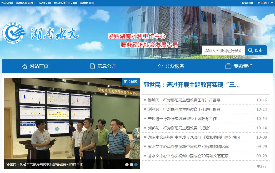 湖南省水文水资源勘测局根据省委、省人民政府《关于印发〈湖南省人民政府机构改革方案的实施意见〉的通知》(湘发[2000]11号)精神,设置湖南省水文水资源勘测局,根据授权,主管全省水文工作。(一) 研究拟定水文事业发展相关的政策,编制水文专业发展规划,经批准后监督实施。(二)负责全省从事水文勘测、水文预报、水文分析与计算、水文水资源调查评价的归口管理,统一管理水文资料的收集、汇总、审定、裁决;组织编制防洪影响评价报告。(三) 组织实施水文行业技术规范和标准;负责本省境内水文水资源监测站网的布局与规划、建设和调整工作。(四) 承担水文水资源监测、调查、分析计算与评价,编制水资源公报。(五) 负责全省实时水文信息的收集、处理与分析,发布重要水情预警预报,参与防洪调度。(六) 承担水资源保护规划的编制和水功能区的划分,审核水域纳污能力;发布水质公报。(七) 负责防汛水情信息系统、水文数据库、水资源监测评价管理服务系统的开发建设和运行管理。(八) 负责水文勘测站队结合基地建设、水文测报现代化及新技术的开发应用。(九) 协助水行政主管部门管理和保护水资源。参与编制区域水长期供求计划、水量分配方案,参与实施取水许可、水资源费征收制度和有关国民经济发展规划、城乡规划及重大建设项目的水资源论证工作。(十) 在水资源的开发利用和保护中,负责对水量、水质的监测、分析和评价,水域排污总量的监控,水土流失监测、区域或工程项目水土保持方案的编制,以及工程水文计算所需水文资料与成果的审定。 (十一) 依照有关行政法规承担水文测报设施保护工作,负责有关水事纠纷、涉水案件裁决所需水 文资料的审定。(十二) 承办省委、省人民政府和省水利厅交办的其它工作。