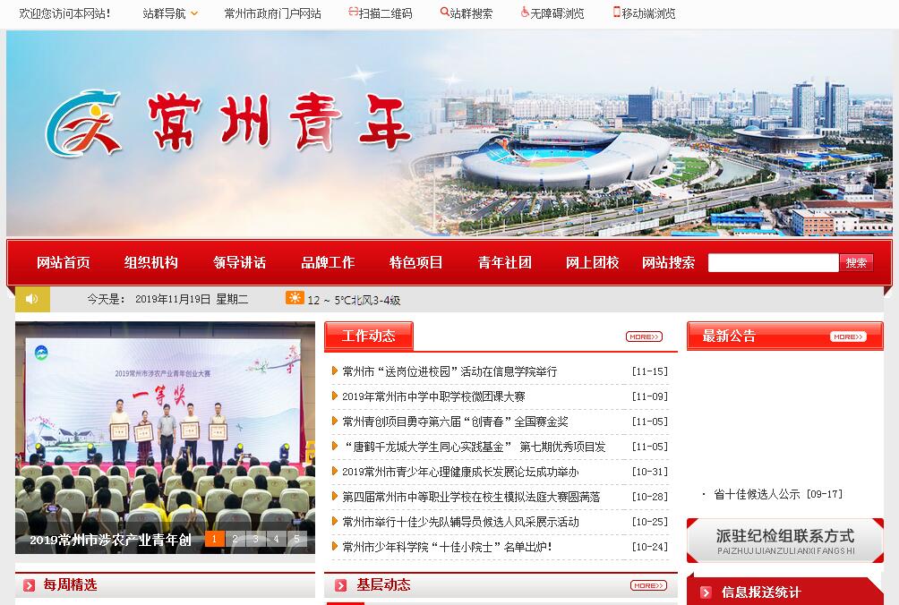 共青团常州市委是常州市青少年工作的领导机关。1950年3月,青年团常州市第一次代表大会召开,正式成立青年团常州市委员会,1957年5月,更名为共青团常州市委员会。其主要工作任务是:(1)领导全市共青团工作,领导和指导市青联、市学联和市少先队工作委员会工作,对全市性青少年社团组织进行指导和管理;(2)参与制定市青少年事业发展规划和青少年工作方针、政策;(3)参与市有关青少年法规的实施、监督等工作,协助党和政府处理、协调与青少年利益相关的事务,维护青少年合法权益,负责市未成年人保护委员会、市预防未成年人犯罪领导小组的日常工作;(4)调查青年思想动态和青年工作状况,研究市青少年运动、青少年工作理论和思想教育问题,提出加强青少年思想教育工作的意见,开展各项活动;(5)协助政府教育部门做好大、中、小学生的教育管理工作,维护学校稳定和社会安定团结;(6)组织和带领全市团员青年在经济建设中发挥生力军和突击队作用;(7)负责全市青年统战工作,会同有关部门对全市青少年外事工作进行管理和提供服务;(8)规划和管理市团校、青少年活动阵地,加强青少年报刊、青少年服务机构的建设,负责组织、指导全市各级团组织做好青少年事业发展的管理工作,筹集青少年事业发展经费;(9)负责全市团的组织建设,协助党组织管理、选拔、培养和培训团干部;(10)承担全市实施"希望工程"的工作;(11)承担在常部省属企事业单位团组织的日常管理工作;(12)完成市委、市政府和团省委交办的有关事项。下设办公室、研究室、组织部、宣传部、基层工作部、社会工作部、学少部、权益部、志愿者工作部、团校(事业)10个部门。