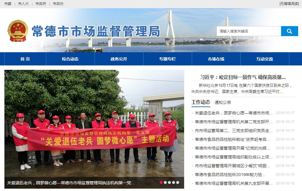 常德市市场监督管理局主要职责:(一)负责市场综合监督管理。贯彻执行市场监督管理的方针政策和法律法规,拟订并组织实施全市市场监督管理工作规划、规范性文件,规范和维护市场秩序,营造诚实守信、公平竞争的市场环境。(二)负责市场主体统一登记注册。指导各类企业(包括授权范围内的外商投资企业)、农民专业合作社和从事经营活动的单位、个体工商户等市场主体的登记注册工作。建立市场主体信息公示和共享机制,依法公示和共享有关信息,加强信用监管,推动市场主体信用体系建设。(三)负责组织和指导市场监管综合执法工作。指导全市市场监管综合执法队伍整合和建设,推动实行统一的市场监管。组织查处跨区域及其它重大违法案件。规范市场监管行政执法行为。(四)负责反垄断统一执法。负责组织协调反倾销、反补贴保障措施等与进出口公平贸易相关的工作,协助开展对外贸易调查和产业损害调查,指导协调产业安全应对工作;协助对经营者集中行为进行反垄断审查,指导企业在国外的反垄断应诉工作。(五)负责监督管理市场秩序。依法监督管理市场交易、网络商品交易及有关服务的行为。组织指导查处价格收费违法违规、不正当竞争、违法直销、传销、侵犯商标专利知识产权和制售假冒伪劣行为。指导广告业发展,监督管理广告活动。指导查处无照生产经营和相关无证生产经营行为。(六)负责宏观质量管理。贯彻国家、省质量发展的有关政策,拟订推进质量发展战略的政策措施并组织实施。完善质量奖励制度;负责政府质量工作考核;会同有关部门组织实施重大工程设施及工程设备质量监理制度,组织重大质量事故调查,实施缺陷产品召回制度,监督管理产品防伪工作。(七)负责产品质量安全监督管理。负责产品质量安全强制检验、风险监控、监督抽查、定期监督检查等相关工作。落实质量分级制度、质量安全追溯制度。负责纤维质量监督管理工作。负责工业产品生产许可管理。负责机动车安全检验技术检验机构监督管理工作。负责产品质量安全仲裁检验、鉴定监督管理工作。负责产品质量专项整治和打击假冒伪劣违法行为,依法查处产品质量违法行为。组织协调有关专项打假活动。(八)负责特种设备安全监督管理。综合管理特种设备安全监察、监督工作。监督检查高能耗特种设备节能标准和锅炉环境保护标准的执行情况。按照规定权限组织调查处理特种设备事故并进行统计分析。(九)负责食品安全监督管理综合协调。组织拟定食品安全有关政策并组织实施。负责食品安全事故应急体系建设,组织指导食品安全事故应急处置和调查处理工作,监督事故查处落实情况。建立健全食品安全重要信息直报制度。承担市食品安全委员会日常工作。(十)负责食品安全监督管理。建立覆盖食品生产、流通、消费全过程的监督检查制度和隐患排查治理机制并组织实施,防范区域性、系统性食品安全风险。推动建立食品生产经营者落实主体责任机制,健全食品安全追溯体系。组织开展食品安全监督抽验、核查处置、风险调查、风险交流工作。组织实施特殊食品备案和监督管理。负责食盐专营管理和食盐安全监督管理。(十一)负责统一管理计量工作。推行法定计量单位和国家计量制度。依职责管理计量器具及量值传递和比对工作。规范、监督商品量和市场计量行为。(十二)负责统一管理标准化工作。依法承担地方标准的立项、编号和发布工作,指导开展标准化试点示范工作。依据法定职责,对标准的制定进行指导监督,对标准的实施进行监督检查。推行采用国际标准。承担企业法人统一社会信用代码、商品条码及法人数据库相关工作。(十三)负责统一管理认证认可工作。依法对检验检测机构、检查机构资质资格及其检验活动进行监督管理,依法监督管理认证中介机构,依法监督管理体系认证和产品认证工作。(十四)负责市场监督管理、知识产权领域科技和信息化建设、新闻宣传、对外交流与合作。按规定承担技术性贸易措施有关工作。(十五)负责实施知识产权战略,推进知识产权强市建设。拟定实施知识产权创造、保护、运用的措施。负责知识产权公共服务体系建设,推动知识产权信息传播利用。(十六)负责保护知识产权。落实严格保护商标、专利、原产地地理标志等相关工作,负责知识产权保护体系建设,组织指导商标、专利执法工作。(十七)负责知识产权创造运用。按权限负责商标、专利和原产地地理标志的管理,开展知识产权运营体系建设,指导重大经济活动知识产权评议,规范知识产权交易和无形资产评估,促进知识产权转移转化。(十八)负责组织开展消费维权工作,查处制售假冒伪劣等违法行为,指导消费者咨询、申诉、举报受理、处理和网络体系建设等工作,保护经营者、消费者合法权益。(十九)负责权限内食品、药品、医疗器械、化妆品行政许可;负责药品、医疗器械、保健食品广告内容的监督检查。(二十)负责监督实施药品和医疗器械标准、分类管理制度;负责配合上级部门监督实施药品和医疗器械研制、生产、经营、使用质量管理规范;配合上级部门监督实施药品、医疗器械注册制度;负责建立药品不良反应、医疗器械不良事件监测体系,组织开展监测和处置工作;配合上级部门开展药品、医疗器械再评价和